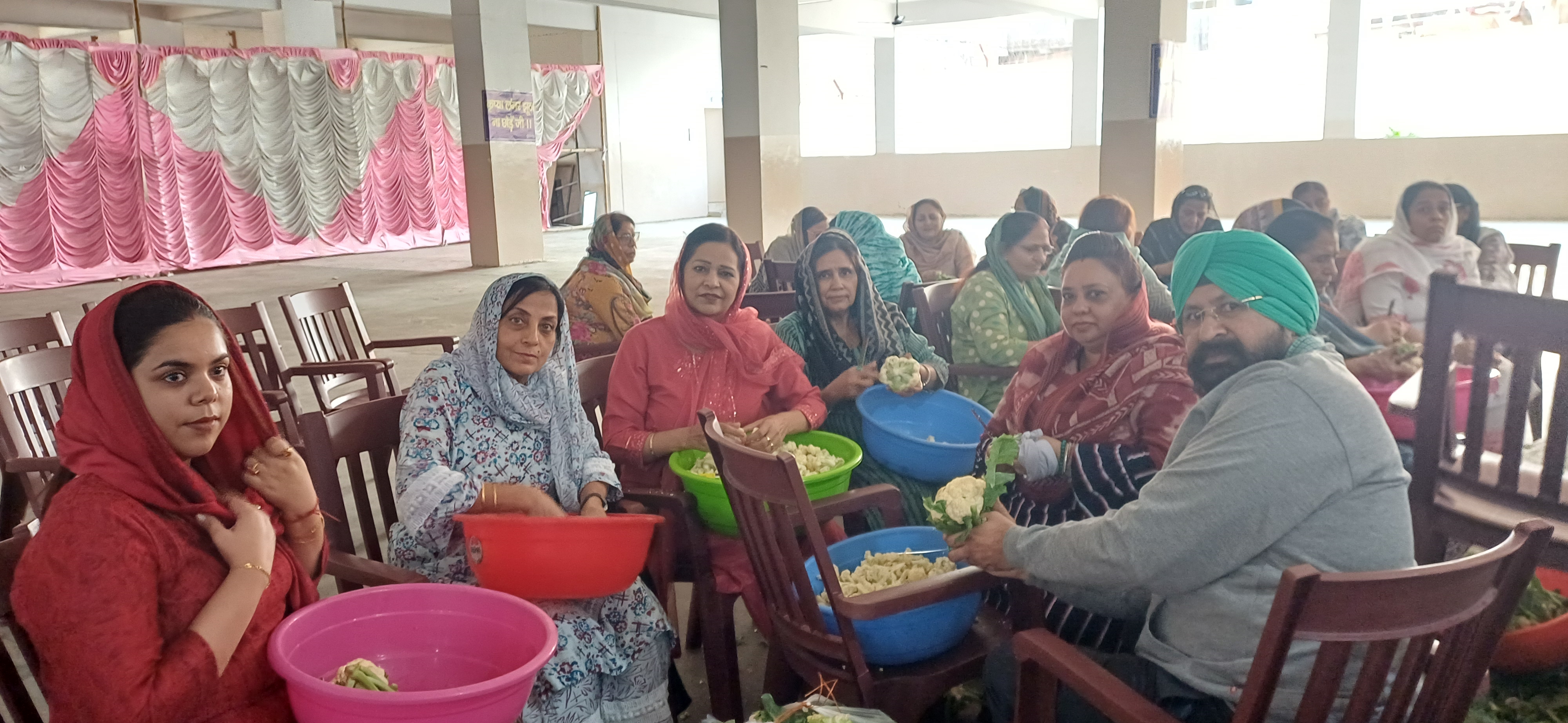 गुरु नानक हायर सेकेंडरी स्कूल में लंगर सेवा में सब्जी काटने की सेवा में लिया बढ़ चढ़ कर हिस्सा l