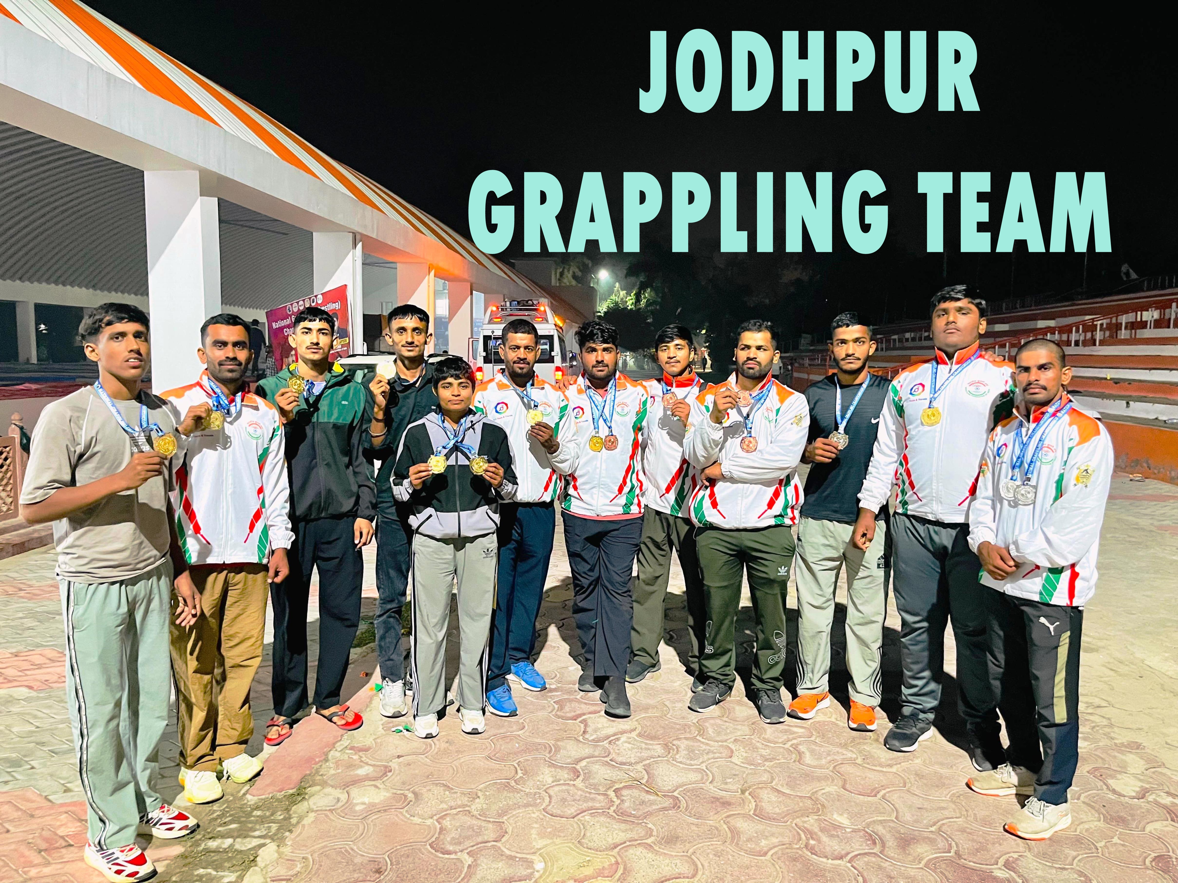 नेशनल ग्रेपलिंग कुश्ती चैंपियनशिप में जोधपुर टीम ने शानदार प्रदर्शन करते हुए राजस्थान को प्रथम स्थान दिलाने में महत्वपूर्ण योगदान दिया। टीम ने कुल 14 पदक जीतकर अपने उत्कृष्ट प्रदर्शन से सबका मन मोह लिया।