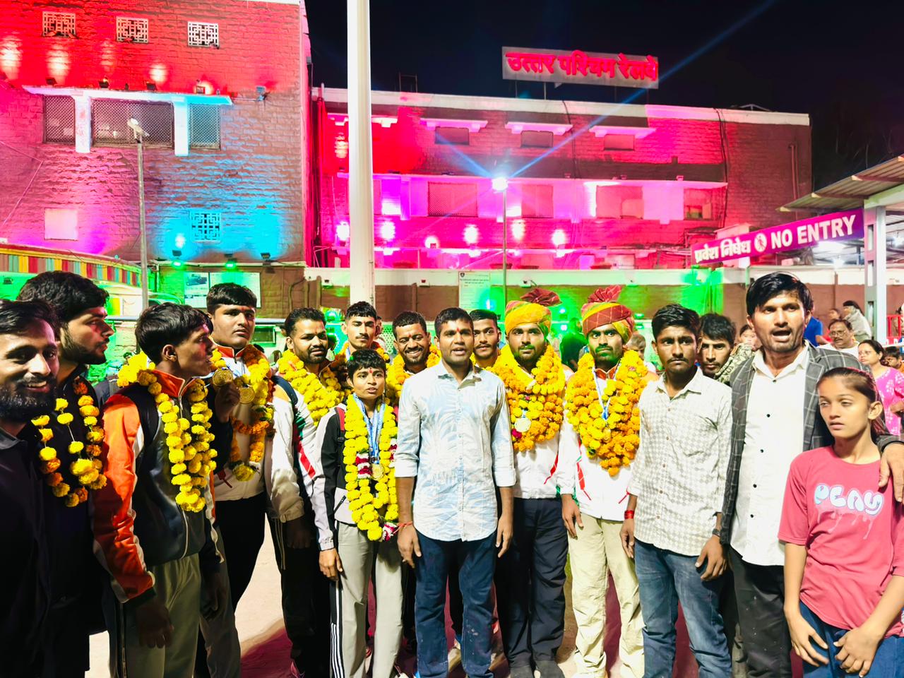 जोधपुर टीम के विजयी लौटने पर ग्रेपलिंग कमेटी जोधपुर एवं स्वामी विवेकानंद स्पोर्ट्स एंड सोशल यूथ क्लब की ओर से ढोल-नगाड़ों के साथ खिलाड़ियों और टीम सहायकों हिमांशी तथा विक्की बिश्नोई का भव्य स्वागत किया गया।