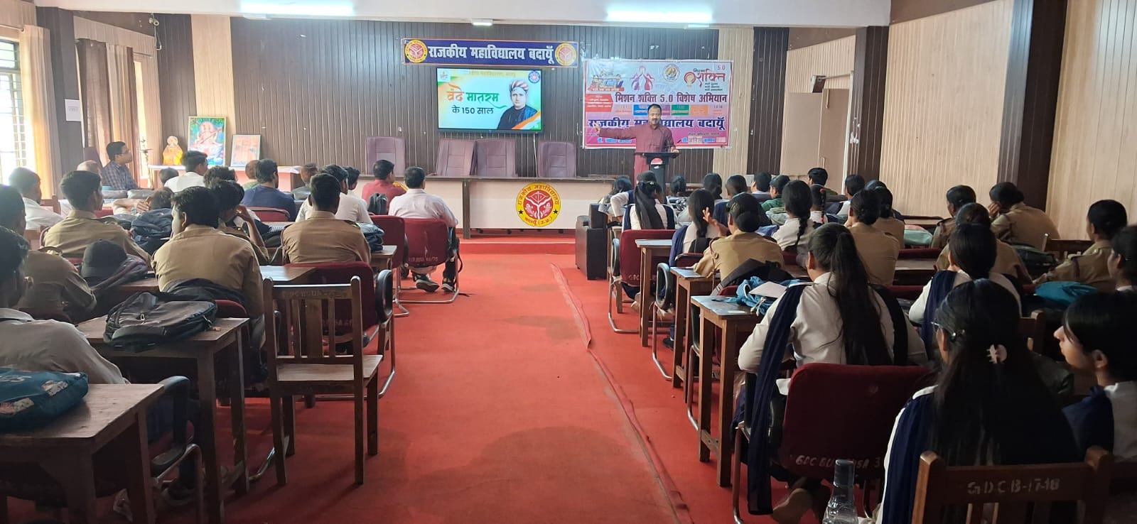 बदायूं। राजकीय महाविद्यालय आवास विकास में शुक्रवार को राष्ट्रीय गीत वंदे मातरम की रचना के 150 वर्ष पूर्ण होने के उपलक्ष्य में विशेष कार्यक्रम आयोजित किया गया। इस अवसर पर छात्र छात्राओं और शिक्षकों ने वंदेमातरम का सस्वर सामूहिक गान किया। राष्ट्रीय सेवा योजना द्वारा आयोजित कार्यक्रम में एनएसएस, एनसीसी एवं रोवर रेंजर से जुड़े विद्यार्थियों ने बढ़ चढ़ कर भाग लिया। स्वतंत्रता आंदोलन में वंदेमातरम गीत के योगदान और राष्ट्र निर्माण में इसकी भूमिका विषय पर संगोष्ठी हुई जिसकी अध्यक्षता प्रभारी प्राचार्य डॉ.अनिल कुमार ने की, जबकि संचालन समारोहक डॉ. रविंद्र सिंह यादव ने किया। मुख्य वक्ता राजनीति विज्ञान विभागाध्यक्ष डॉ. राकेश कुमार जायसवाल ने वंदे मातरम के महत्व और राष्ट्रनिर्माण में इसके योगदान पर प्रकाश डाला। डॉ जायसवाल ने कहा कि साहित्यिक, सांस्कृतिक और राष्ट्रीय स्तर पर यह गीत भारत के स्वतंत्रता संग्राम का प्रेरणा स्रोत रहा है। इतिहास विभाग के असिस्टेंट प्रोफेसर एवं राष्ट्रीय सेवा योजना के कार्यक्रम अधिकारी डॉ. संजय कुमार ने बंकिम चंद्र चटर्जी के आनंदमठ उपन्यास की ऐतिहासिक और राष्ट्रीय संदर्भ को उद्घाटित करते हुए राष्ट्रीय गीत के सांस्कृतिक महत्व पर चर्चा की। अध्यक्षीय उद्बोधन में प्राचार्य डॉ. अनिल कुमार ने वंदे मातरम के महत्व और राष्ट्रनिर्माण में उसकी भूमिका पर प्रकाश डालते हुए कहा कि यह कार्यक्रम वंदे मातरम को राष्ट्रीय धरोहर के रूप में अक्षुण्ण बनाए रखना, विकसित भारत के निर्माण में उसकी भूमिका और स्वतंत्रता आंदोलन में इसके योगदान को नई पीढ़ी तक पहुँचाना हम सभी का दायित्व है। इस अवसर पर डॉ. बबीता यादव, शशि प्रभा, डॉ. हुकम सिंह, डॉ. सचिन कुमार राघव, डॉ. दिलीप कुमार वर्मा, डॉ. गौरव कुमार सिंह, डॉ. ज्योति बिश्नोई, डॉ. सारिका शर्मा, डॉ. प्रियंका सिंह, डॉ. जुनेद आलम, संजीव शाक्य, प्रमोद कुमार शर्मा आदि उपस्थित थे। संवाद