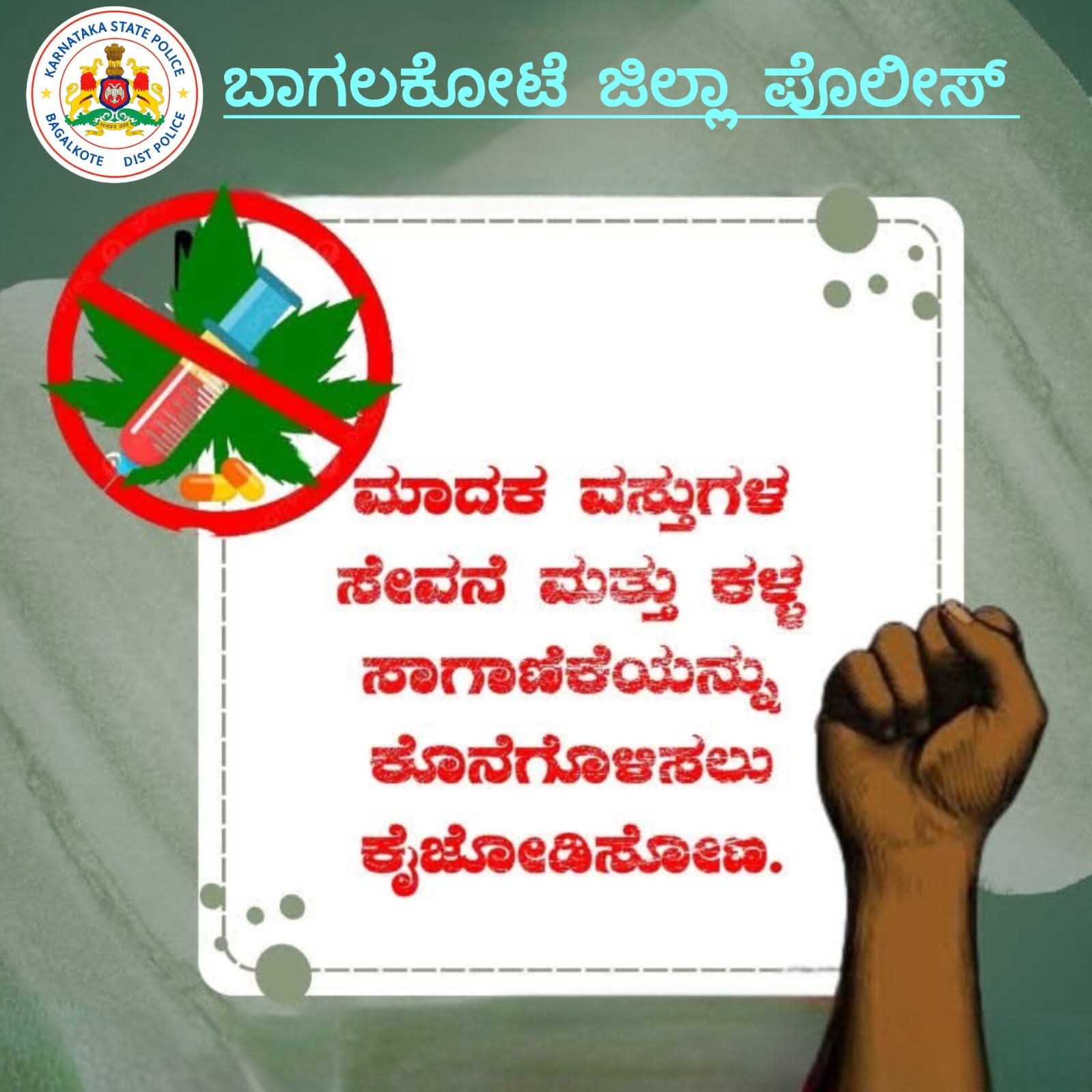 ಮಾದಕ ವಸ್ತುಗಳ ಸೇವನೆ ಮತ್ತು ಕಳ್ಳ ಸಾಗಾಣಿಕೆಯನ್ನು ತಡೆದು, ಸ್ವಸ್ಥ, ಸಧೃಢ ಸಮಾಜ ನಿರ್ಮಾಣಕ್ಕೆ ಎಲ್ಲರೂ ಕೈ ಜೋಡಿಸೋಣ ಯುವ ಜನತೆಯ ಭವಿಷ್ಯ ಕಾಪಾಡುವುದು ನಮ್ಮೆಲ್ಲರ ಕರ್ತವ್ಯ@igpbelagavi@dgpkarnataka@karnatakacops