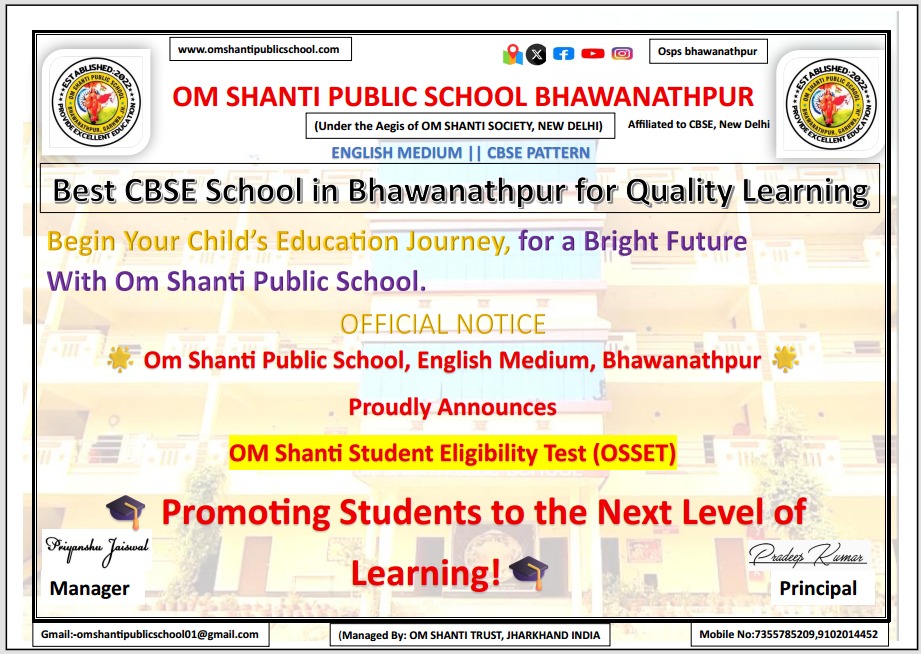 ओम शांति पब्लिक स्कूल (इंग्लिश मीडियम), भवनाथपुर प्रस्तुत करता है – ओम शांति छात्र पात्रता परीक्षा (OSSET)