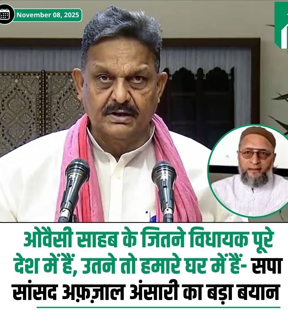 ओवैसी साहब के जितने विधायक पूरे देश में हैं, उतने तो हमारे घर में हैं- सपा सांसद अफ़ज़ाल अंसारी का बड़ा बयान