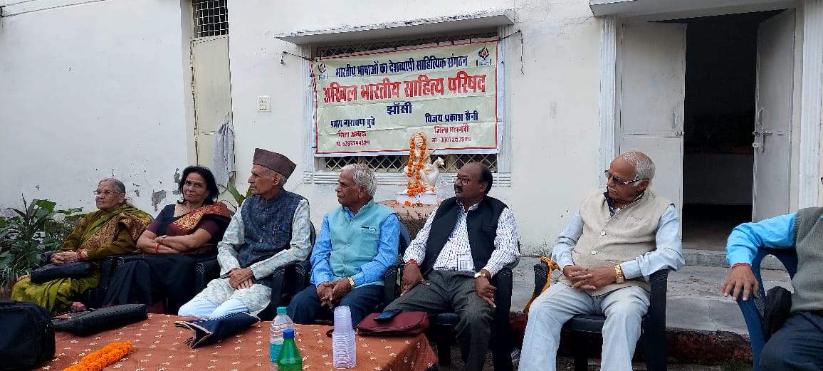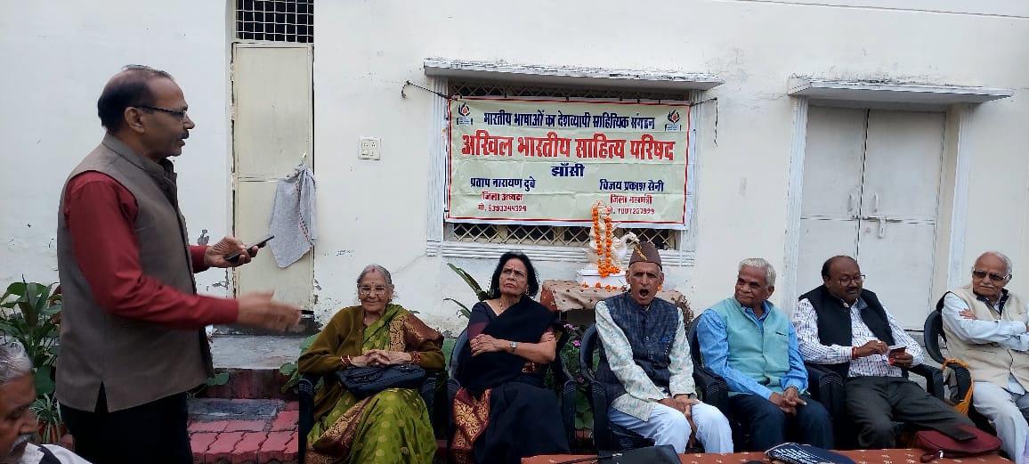 झाँसी- भारतीय साहित्य परिषद झांसी की मासिक काव्य गोष्ठी का स्थानीय सैनी गार्डन में डॉ प्रताप नारायण दुबे की अध्यक्षता एवं डॉ एम. एस श्रीवास्तव सहित गीतकार राजेश सुमनजी पृथ्वीपुर के मुख्य आतिथ्य में आयोजन किया गया ।विशिष्ट अतिथि डॉ सुमन , बृजलता मिश्रा, डॉ सुखराम चतुर्वेदी फौजी रहे ।गोष्ठी का सफल संचालन डॉ राजेश तिवारी मक्खन ने किया। मां सरस्वती के पूजन वंदन पश्चात सभी कवि साहित्यकारों ने एक से बढ़कर एक रचनाएँ सुनाई जिनका श्रोताओं ने भरपूर आनंद लिया।उपस्थित कवियों में मुख्य रूप से श्री कृष्ण मुरारी श्रीवास्तव सखा , डॉ निहाल चन्द्र शिवहरे , डॉ राम बिहारी सोनी, डॉ जी पी वर्मा मधुरेश श्री दिनेश शर्मा चिंतक , श्री साकेत सुमन चतुर्वेदी , श्री अशोक मिश्रा,शरद मिश्रा,गौरव पटेरिया ,श्री अरुण हिंगवासिया सहित अन्य स्थानीय कवियों ने सहभागिता की ।अंत में श्री विजय प्रकाश सैनी विजय ने सभी का आभार व्यक्त किया।
