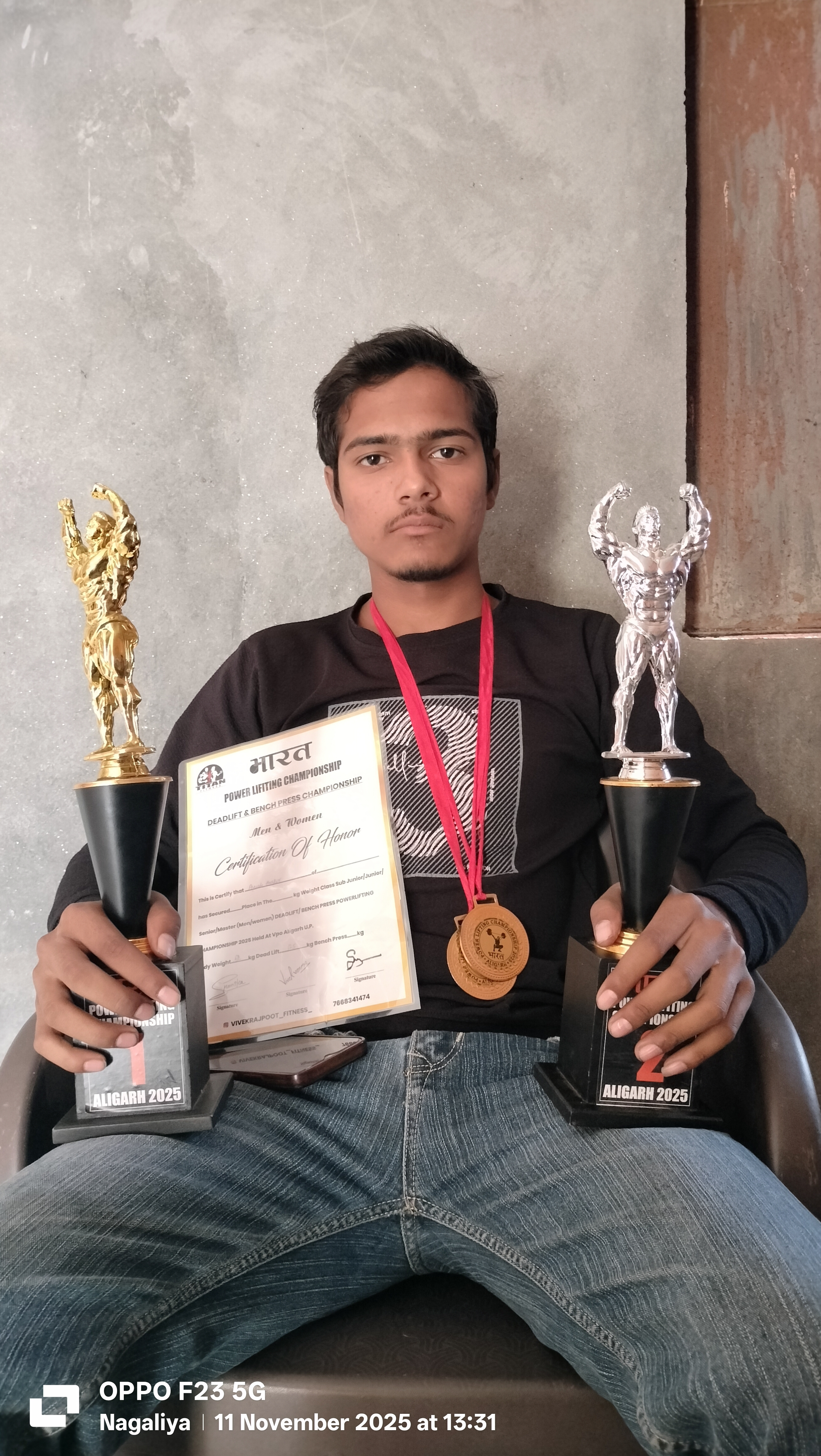 प्रतियोगिता में देशभर के विभिन्न राज्यों से सैकड़ों प्रतिभागियों ने हिस्सा लिया था, जिनके बीच कड़ी प्रतिस्पर्धा रही। आयुष ठाकुर ने 52 किलो वजन पर 145 किलो बेट लिफ्टिंग कर अपने प्रदर्शन से सभी को प्रभावित करते हुए राज्य स्तर पर सिल्वर मेडल,ओर जनपद स्तर पर स्वर्ण पदक हासिल किया। उनकी इस उपलब्धि पर गांव नगलिया बल्लू सहित पूरे क्षेत्र में खुशी की लहर दौड़ गई है।
