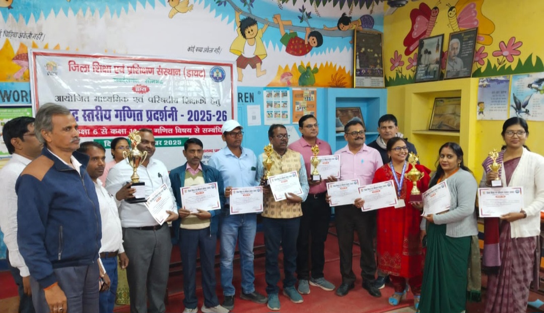 सोनभद्र: जिला शिक्षा व प्रशिक्षण संस्थान रॉबर्ट्सगंज सोनभद्र में माध्यमिक विद्यालयों और परिषदीय विद्यालयों के उच्च प्राथमिक स्तर में गणित के शिक्षकों ने गणित शिक्षण को बेहतर बनाने के लिए शिक्षण अधिगम सामग्री और नवाचार की प्रदर्शनी लगाई। स्कूली शिक्षा महानिदेशक के आदेश व प्राचार्य डायट/जिला बेसिक शिक्षा अधिकारी मुकुल आनंद पाण्डेय के निर्देश के क्रम में प्रतियोगिता नोडल हीरालाल प्रजापति की देखरेख में प्रदर्शनी में का आयोजित की गई। इस प्रदर्शनी में शिक्षकों ने कक्षा 6 से 10 तक बच्चों के गणित के शिक्षण अधिगम सामग्री और नवाचार प्रस्तुत किया । गणित टीएलएम व नवाचार में प्रमुख रूप से इलेक्ट्रॉनिक सर्वसमिका, संख्या का वर्ग ऑफ वर्गमूल, चक्रीय चतुर्भुज, गुणनफल की संक्रिया, एक ही वृत्तखण्ड में बने कोण बराबर होते हैं। कोण और कोण के प्रकार आदि बहुत सुंदर ढंग से प्रस्तुत किया गया। डायट प्रवक्ता हीरालाल, जिज्ञासा यादव व हरिवंश ने सभी प्रतिभागियों के टीएलएम का निरीक्षण किया। उनके टीएलएम व नवाचार के आधार पर उनका मूल्यांकन किया, जिसमें प्रथम स्थान पर शिक्षा निकेतन इंटर कॉलेज ओबरा के शिवकुमार सिंह रहे। दूसरे स्थान पर उच्च प्राथमिक विद्यालय बिल्ली की सहायक अध्यापक सुमन सिंह, तीसरे स्थान पर कम्पोजिट विद्यालय सेंधुरी के सहायक अध्यापक कमलेश विश्वकर्मा, चौथे स्थान पर उच्च प्राथमिक विद्यालय खैरटिया के सहायक अध्यापक रमेश चन्द्र जायसवाल और पांचवे स्थान पर उच्च प्राथमिक विद्यालय ओरगाई की सहायक अध्यापिका सरिता जायसवाल रहीं। सभी को पुरस्कृत और प्रमाणपत्र दिया गया।