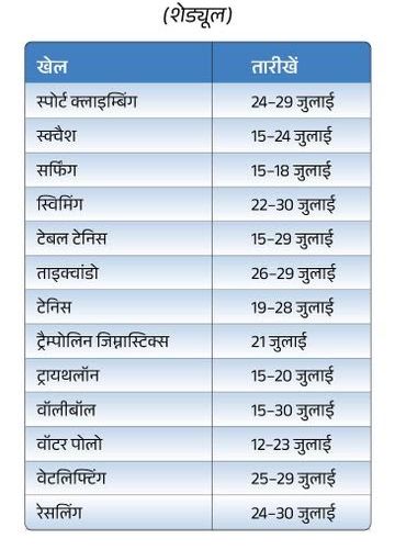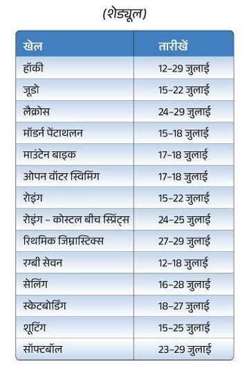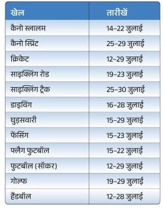 पहला दिन पूरी तरह महिलाओं के नाम रहेगा ओलिंपिक के पहले दिन महिला ट्रायथलॉन, 100 मीटर और शॉटपुट (एथलेटिक्स), जूडो (48 किग्रा), फेंसिंग, कयाक सिंगल, रग्बी सेवन और 10 मीटर एयर राइफल जैसे इवेंट्स में गोल्ड मेडल तय होंगे।