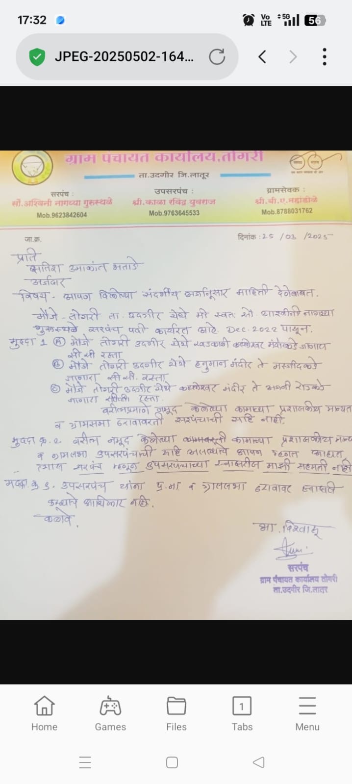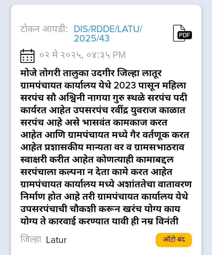 मौजे तोगरी येथील रहिवासी माजी सैनिक असलेले सतीश उमाकांत भताडे यांनी गावातील ग्रामपंचायत कार्यालयात भ्रष्टाचार झाल्याचा व अपसरपंच पदाचा गैरवापर केल्याचा आरोप करण्यात आला असून संबंधित विस्तार अधिकारी उधटभाषा वापरून मला अरे वरी च्या भाषेत शिवीगाळ करत आहे मी त्याना विचारले की तुम्ही काय चौकशी केली आहे त्याचे हवाल मला द्या असे विहरत होतो तेव्हा मला जा तुला काय करायचे ते कर मी कोणालाही घाबरत नाही व मी म्हणल की तुम्ही इते कश्यासाठी बसलात म्हणजे मी इते झक मारायला बआलो असे म्हनत नीग बाहेर असे म्हणले अस्या अधिकाऱ्याव्रती तत्काळ निलंबित करण्यात यावी