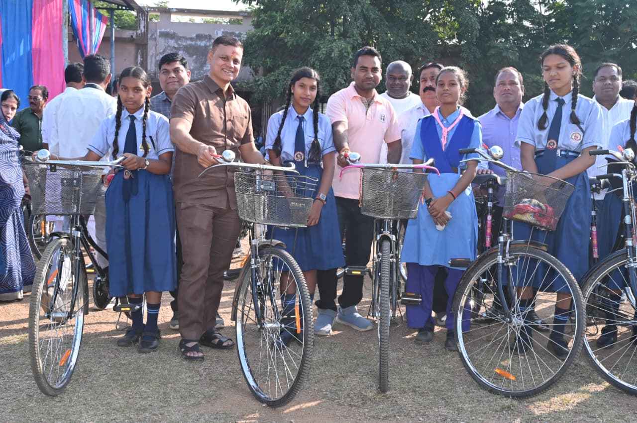 स्वामी आत्मानंद पंचम दीवान विद्यालय मे छात्राओं को सायकिल वितरित ....