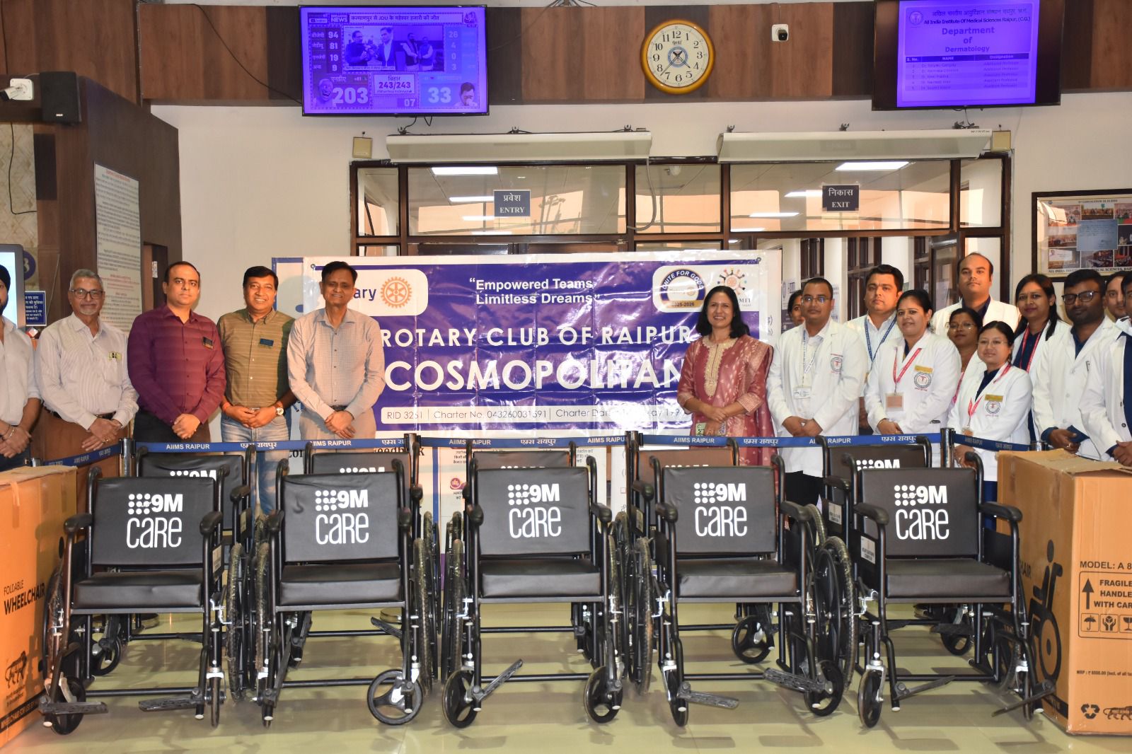 2. रोटरी क्लब रायपुर कॉसमोपॉलिटन ने AIIMS रायपुर को 50 व्हीलचेयर भेंट की, निदेशक ने जताया आभार