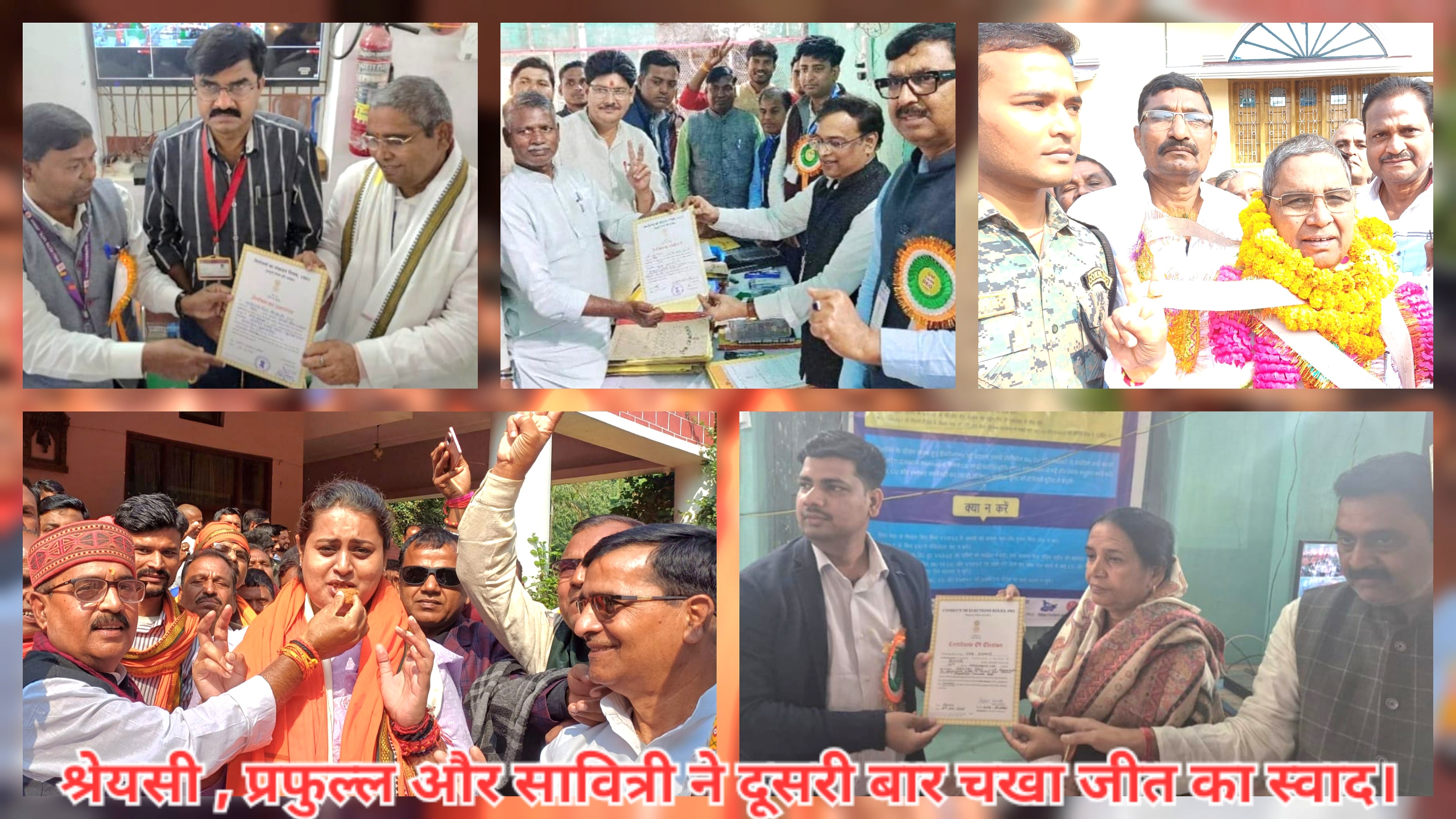 दामोदर ने छठी बार पहना जीत का सेहरा , जदयू में ऊर्जा के साथ उल्लास।जमुई एनडीए में जश्न का माहौल , ई.शंभू ने घनबेरिया का पेड़ा खिलाकर दी बधाई।रिपोर्टर : विजय कुमार ठाकुरजमुई जिला अंतर्गत 240 सिकंदरा (सु) विधानसभा क्षेत्र , 241 जमुई , 242 झाझा और 243 चकाई विधानसभा क्षेत्र का नतीजा बीते देर शाम तक घोषित कर दिया गया। एनडीए को तीन और महागठबंध को एक सीट पर जीत मिली। चकाई विधानसभा क्षेत्र के निर्दलीय प्रत्याशी संजय प्रसाद ने 48065 वोट लाकर पूरे बिहार में सबसे ज्यादा मत प्राप्त करने वाले स्वतंत्र उम्मीदवार नामित किए गए। श्री प्रसाद ने भारी मत हासिल कर जहां जमुई समेत पूरे बिहार को चौंका दिया वहीं जदयू प्रत्याशी सुमित कुमार सिंह को हार का सामना करने के लिए मजबूर कर दिया। राजनीतिक विश्लेषक अपने अपने ढंग से चकाई के चुनाव परिणाम का विश्लेषण कर रहे हैं। संजय प्रसाद निर्दलीय उम्मीदवार के रूप में सुर्खियां बटोर रहे हैं। सबसे पहले झाझा विधानसभा क्षेत्र की बात करते हैं। यहां बिहार सरकार के पूर्व मंत्री सह वर्तमान विधायक और जदयू के दिग्गज नेताओं में से एक दामोदर रावत पार्टी प्रत्याशी के रूप में चुनावी मैदान में थे। उनका सीधा मुकाबला भारत सरकार के पूर्व मंत्री और राजद के दिग्गज नेता जयप्रकाश नारायण यादव से था। श्री रावत ने श्री यादव को 4262 मतों के अंतर से हराया। जदयू प्रत्याशी को कुल 108317 मत मिले वहीं राजद उम्मीदवार को 104055 वोट से संतोष करना पड़ा। बता दें कि दामोदर रावत ने झाझा विधानसभा क्षेत्र से छठी बार जीत का परचम लहराया है। जमुई विधानसभा क्षेत्र से बीजेपी ने गोल्डन गर्ल की उपाधि से प्रख्यात श्रेयसी सिंह को उम्मीदवार बनाया था।उनका सीधा भिड़ंत राजद उम्मीदवार मो. शमशाद आलम से था। गोल्डन गर्ल ने श्री आलम को 54498 मतों से करारी शिकस्त दी। बीजेपी उम्मीदवार को 123868 मत मिले वहीं राजद प्रत्याशी को 69370 वोटों से संतोष करना पड़ा। अंकित करने वाली बात है कि श्रेयसी सिंह की यह लगातार दूसरी जीत है। सिकंदरा विधानसभा क्षेत्र से हम पार्टी के उम्मीदवार प्रफुल्ल कुमार मांझी ने जीत दर्ज की है।उन्होंने राजद प्रत्याशी और विधानसभा के पूर्व अध्यक्ष उदय नारायण चौधरी को 23907 मतों के बड़े अंतर से हराया। श्री मांझी को 91603 मत मिले वहीं श्री चौधरी को 67696 वोटों से संतोष करना पड़ा। गौरतलब है कि प्रफुल्ल कुमार मांझी भी लगातार दूसरी बार जीतकर विधानसभा जा रहे हैं।चकाई विधानसभा क्षेत्र का चुनाव परिणाम पूरे बिहार में सुर्खियां बटोर रहा है। नीतीश सरकार के कुल 29 मंत्रियों में 28 ने जीत दर्ज की वहीं एकमात्र मंत्री सुमित कुमार सिंह को हार का सामना करना पड़ा। यहां से राजद उम्मीदवार सावित्री देवी ने जीत दर्ज की है। उन्होंने बिहार सरकार के मंत्री सुमि