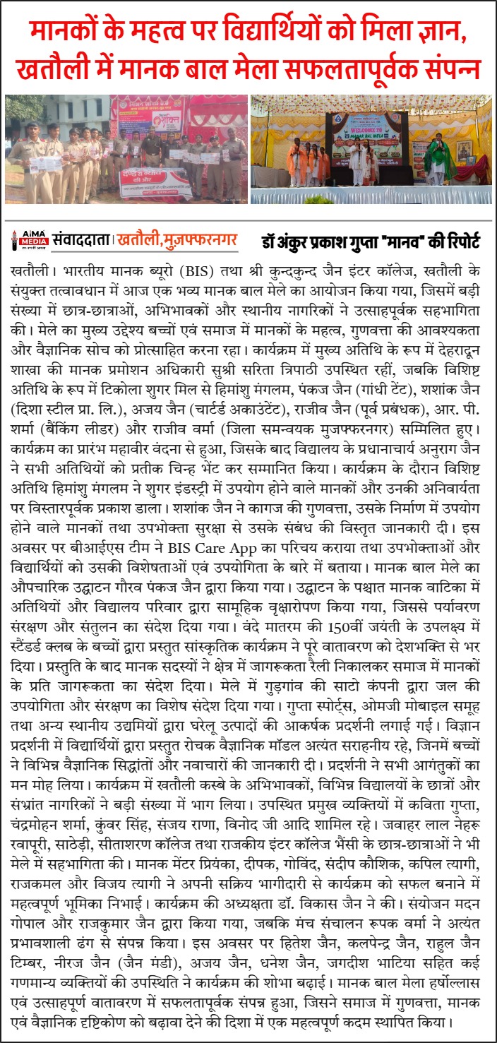 मानकों के महत्व पर विद्यार्थियों को मिला ज्ञान, खतौली में मानक बाल मेला सफलतापूर्वक संपन्न