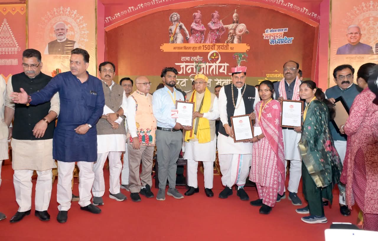 राज्यस्तरीय कार्यक्रम में राज्यपाल श्री मंगुभाई पटेल और केंद्रीय जनजातीय कार्य राज्यमंत्री श्री दुर्गादास उईके विशिष्ट अतिथि के रूप में उपस्थित थे। कार्यक्रम में राज्यपाल श्री पटेल और मुख्यमंत्री डॉ. मोहन यादव द्वारा विशिष्ट उपलब्धियां प्राप्त करने वाले जनजातीय समुदाय के युवाओं, चित्रकारों और सिकल सेल एनीमिया पर उत्कृष्ट कार्य करने वाले डॉक्टर्स को भी सम्मानित किया गया। इस अवसर पर हाल ही में सम्पन्न आईसीसी महिला क्रिकेट विश्वकप में उत्कृष्ट प्रदर्शन के लिए छतरपुर जिले की महिला क्रिकेटर सुश्री क्रांति गौड़ को 1 करोड़ का चेक और प्रशस्ति-पत्र दिया गया। अतिथियों द्वारा पद्मश्री श्री अर्जुन सिंह धुर्वे, श्रीमती फुलझारिया बाई, श्रीमती उजियारो बाई, विक्रम अवॉर्डी सुश्री रागिनी मार्को, सुश्री सृष्टि सिंह तथा राज्‍य शासन के सहयोग से विदेश में अध्‍ययन करने वाले विद्यार्थी आशाराम पालवी एवं रवि मेड़ा को सम्मानित किया गया। कार्यक्रम में प्रतियोगी परीक्षा पास करने वाले विशेष पिछड़ी जनजाति समूह (पीवीटीजी) के चयनित 6 अभ्यर्थियों को नियुक्ति-पत्र दिया गया। कक्षा 12वीं में उत्कृष्ट प्रदर्शन के लिए जनजातीय वर्ग के दो मेधावी विद्यार्थियों को महाराजा शंकर शाह और रानी दुर्गावती मेधावी पुरस्कार प्रदान किए गए। अतिथियों द्वारा जनजातीय कार्य विभाग की योजनाओं की एक ही स्थान पर एकीकृत जानकारी के लिए तैयार शालिनी एप का लोकार्पण किया गया। अतिथियों द्वारा शासन की वि‍भिन्न योजनाओं के तहत चयनित जनजातीय वर्ग हितग्राहियों को हितलाभ वितरण भी इस अवसर पर किया गया।