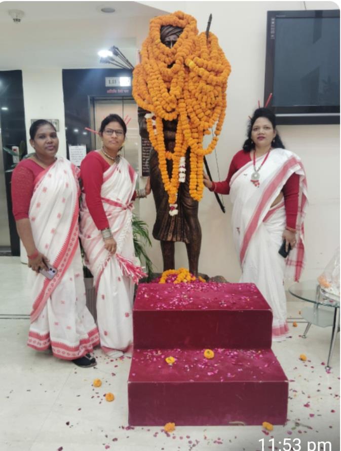 दिल्ली : सहयोग आशा ट्रस्ट द्वरा शनिवार को राष्ट्रीय जनजातीय अनुसंधान संस्थान परिसर वसंत बिहार दिल्ली मे धरती आबा, अमर शहीद बिरसा मुंडा की 150 वीं जयंती,15 नवम्बर 2025 के अवसर पर उन्हें श्रद्धांजलि देते हुए नमन किया गया. कार्यक्रम के अनुसार बिरसा भगवान की तैल चित्र पर सदस्यों एवं अतिथियों के द्वारा माल्यार्पण एवं पुष्प अर्पित किये गए. श्रद्धांजलि कार्यक्रम के बाद सदस्यों ने शहीद बिरसा मुंडा के संघर्षों एवं कुर्बानियों पर विचार ब्यक्त करने के उपरांत सहयोग आशा ट्रस्ट के सदस्यों ने बड़े ही धूमधाम से मांदर की थाप पर थिरकते हुये उनके जयंती मनायी गयी ।