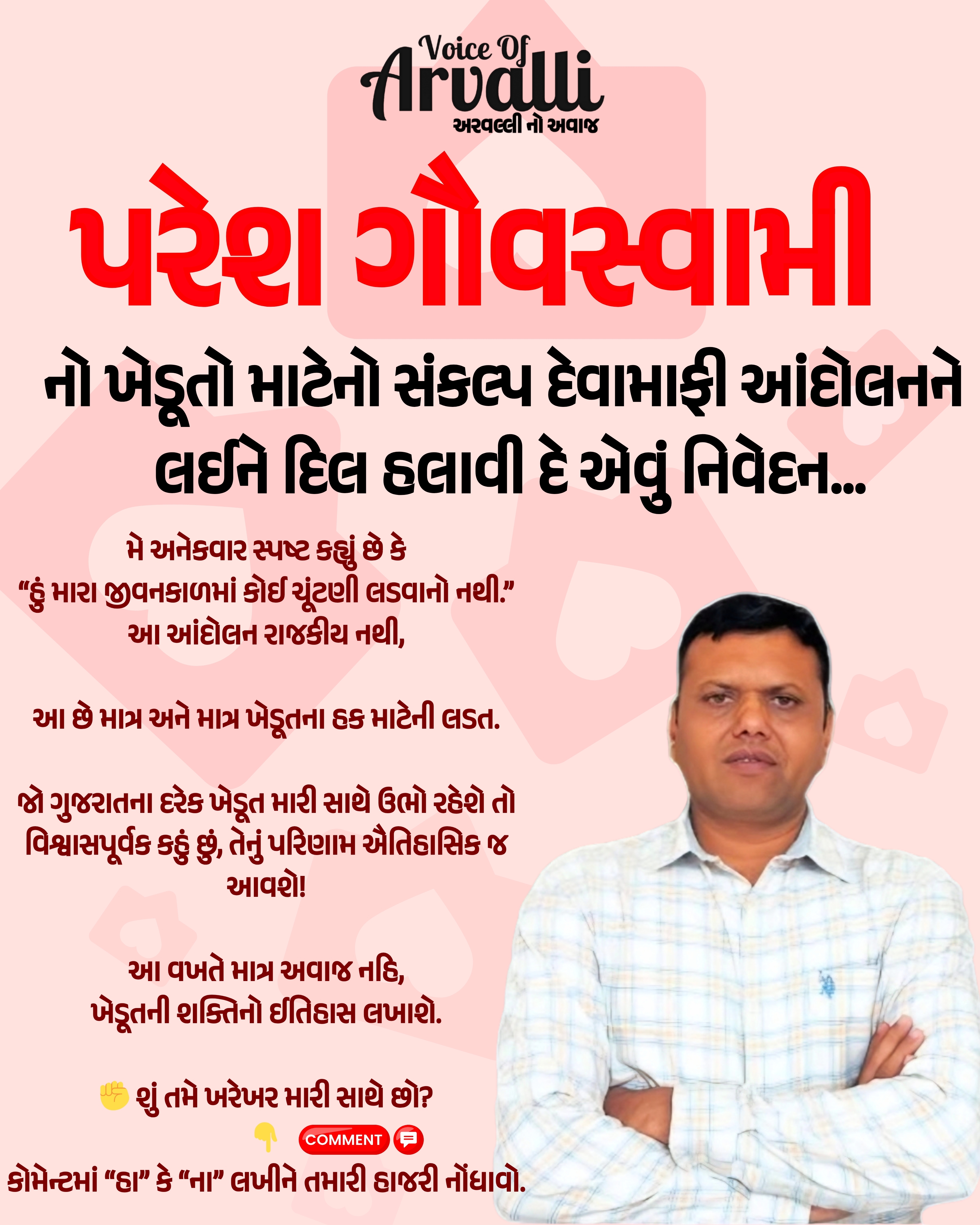 પરેશ ગૌવસ્વામીનો ખેડૂતો માટેનો સંકલ્પ… રાજકારણથી પરે, આ છે માત્ર અને માત્ર ખેડૂતના હક માટેની લડત! આવાજ ઉઠાવવાનો સમય આવી ગયો છે.