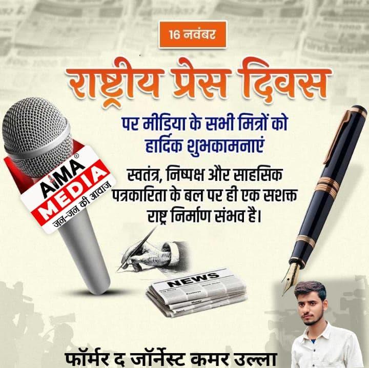 आल इंडिया मीडिया एसोसिएशन सभी पत्रकार बंधु को राष्ट्रीय प्रेस दिवस की हार्दिक बधाई एवं शुभकामनाएं।