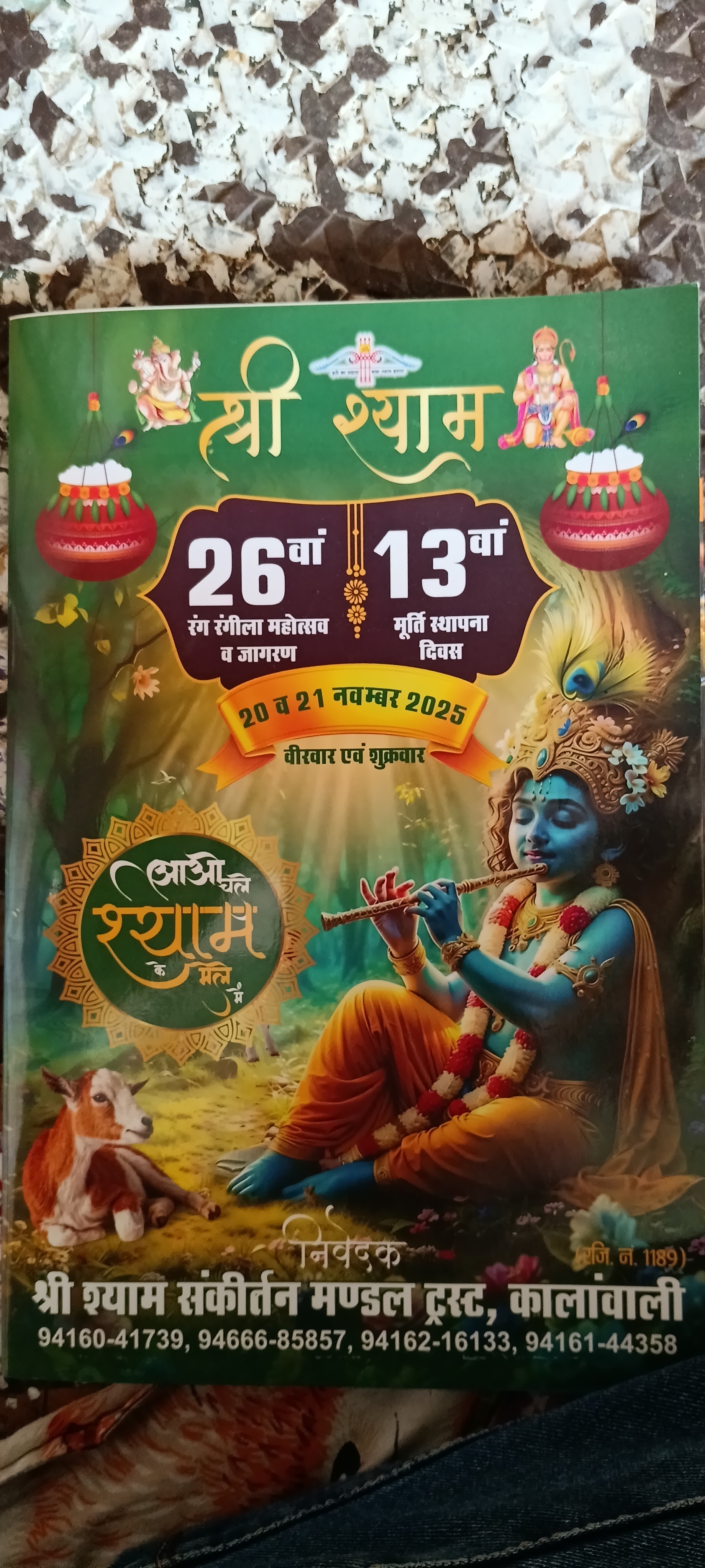 श्री श्याम संकीर्तन मण्डल ट्रस्ट, कालांवाली द्वारा 26वाँ रंग रंगीला महोत्सव व जागरण तथा 13वाँ मूर्ति स्थापना दिवस 20 एवं 21 नवम्बर 2025 (वीरवार व शुक्रवार) को श्रद्धा और उत्साह के साथ मनाया जाएगा।