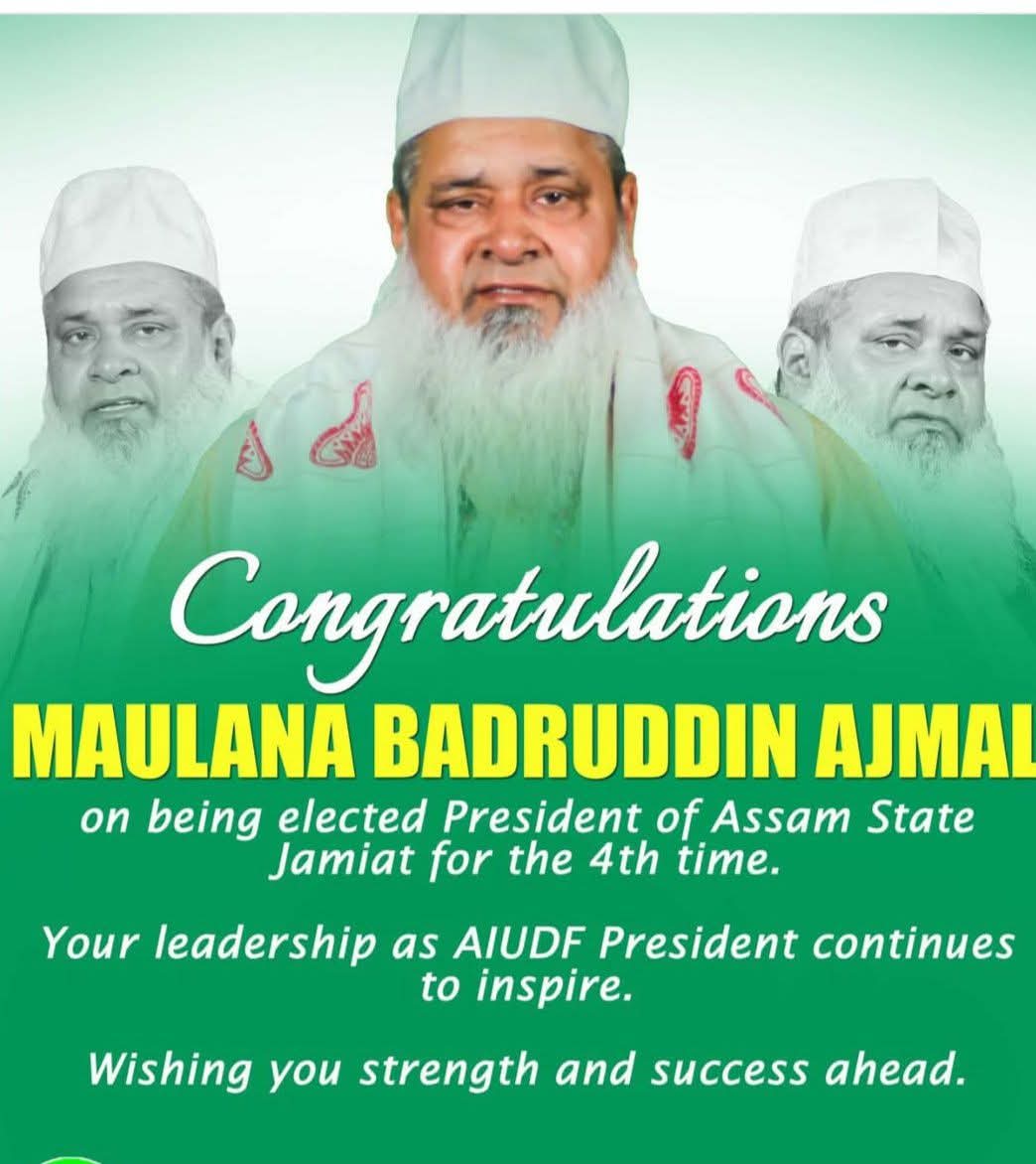 Maulana Badruddin Ajmal Al Qasimi Former MP of Dhubri has been elected as the President of Assam State Jamiat Ulema-e-Hind