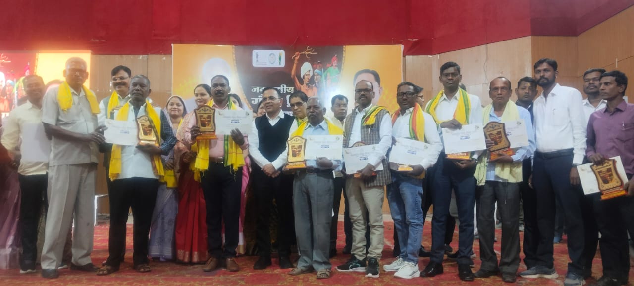 जांजगीर चांपा जिले में 15/11/25 को छ ग शासन द्वारा जनजाति गौरव दिवस के शुभ अवसर पर वन विभाग में पदस्थ होते हुए एवं समाजिक उत्कृष्ट कार्य करने पर मुख्य अतिथि जनप्रतिनिधि, कलेक्टर एवं सहायक आयुक्त आदिवासी विकास विभाग जांजगीर-चांपा द्वारा श्री सुखदेव प्रसाद राठिया प्रभारी रेंजर बलौदा चांपा एवं श्री राम कृष्ण बिंझवार उपवन क्षेत्रपाल प स पंतोरा को मेमोंटो एवं प्रशस्ति पत्र से सम्मानित किया गया।