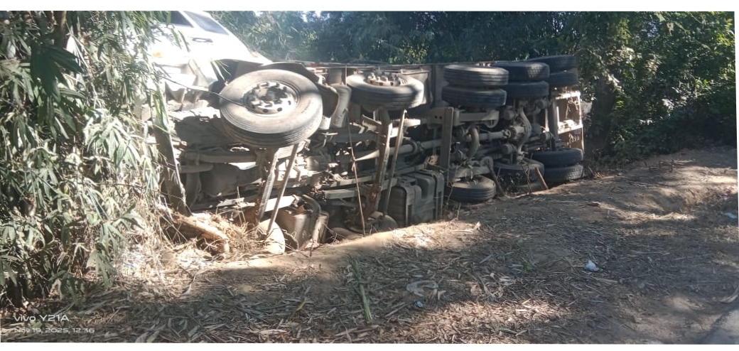 पश्चिम कार्बी आंगलोंग (असम): बुधवार, 19 नवंबर 2025 को मंडप बाजार के पास एक बड़ी सड़क दुर्घटना हुई। कोयले से लदा एक 16 चक्का ट्रक, जिसका पंजीकरण संख्या AS01TC3651 है, दुर्घटनाग्रस्त हो गया।