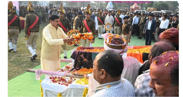 शहीद आशीष शर्मा पंचतत्व में विलीन, CM मोहन यादव ने दिया कंधा, छोटे भाई को सब इंस्पेक्टर बनाने का एलान