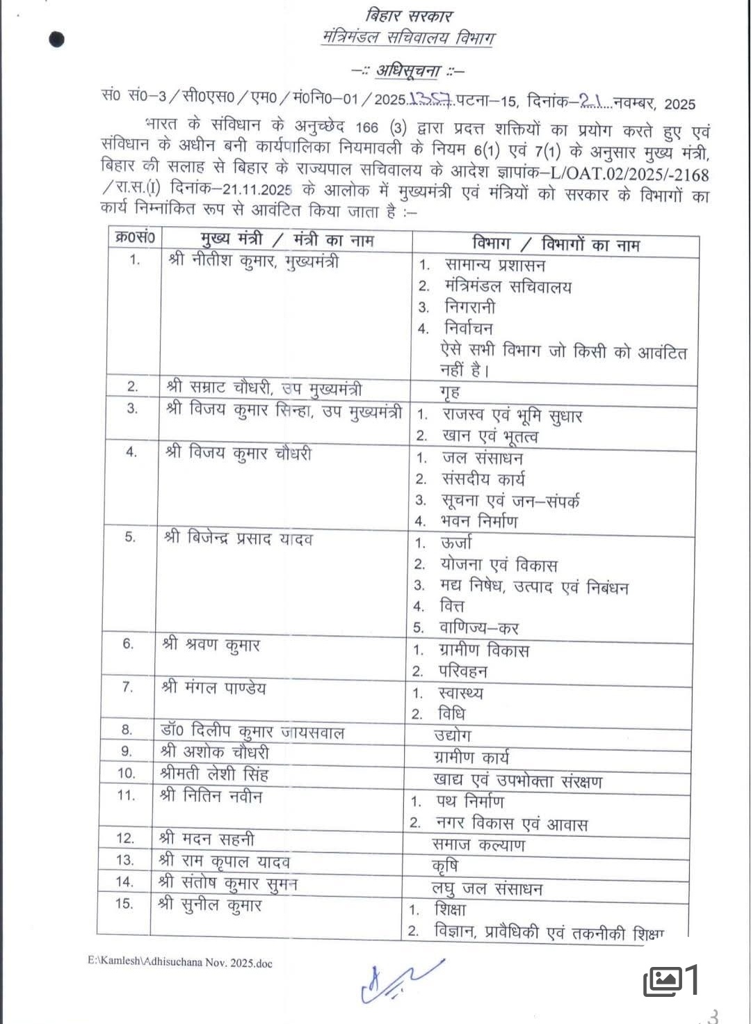 ब्रेकिंग न्यूज़ बिहार में नई सरकार की शपथ ग्रहण समारोह हुआ। नए मंत्रियों मंडलों का लिस्ट जारी हुआ।