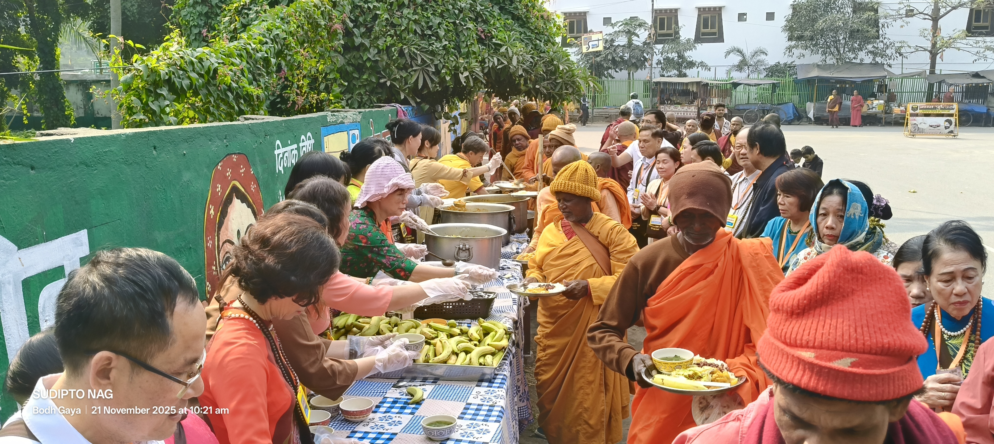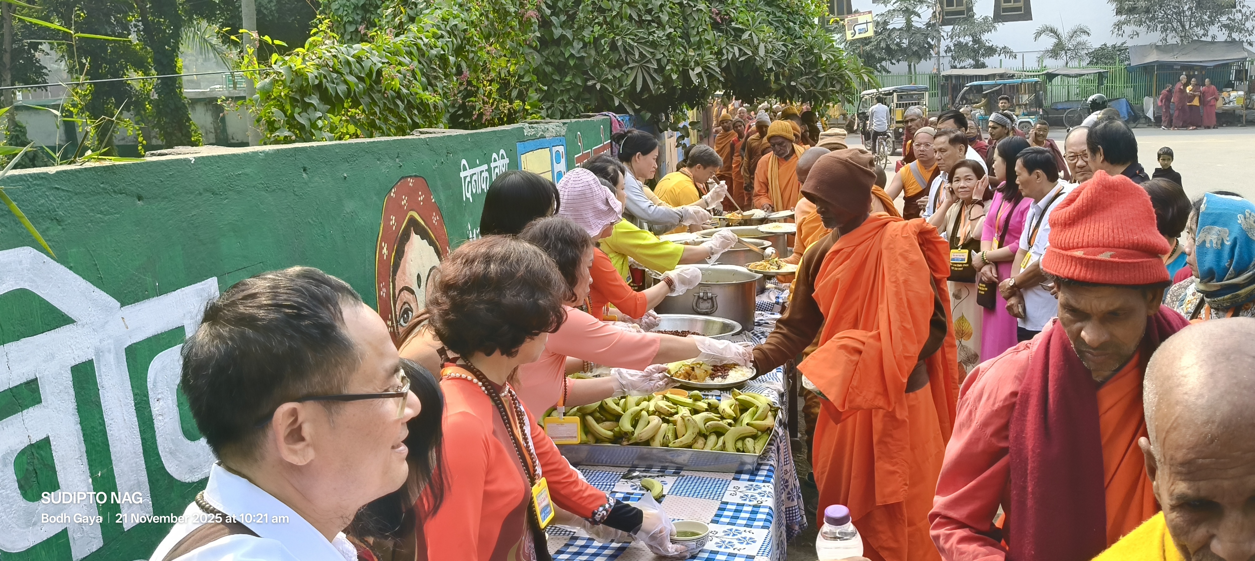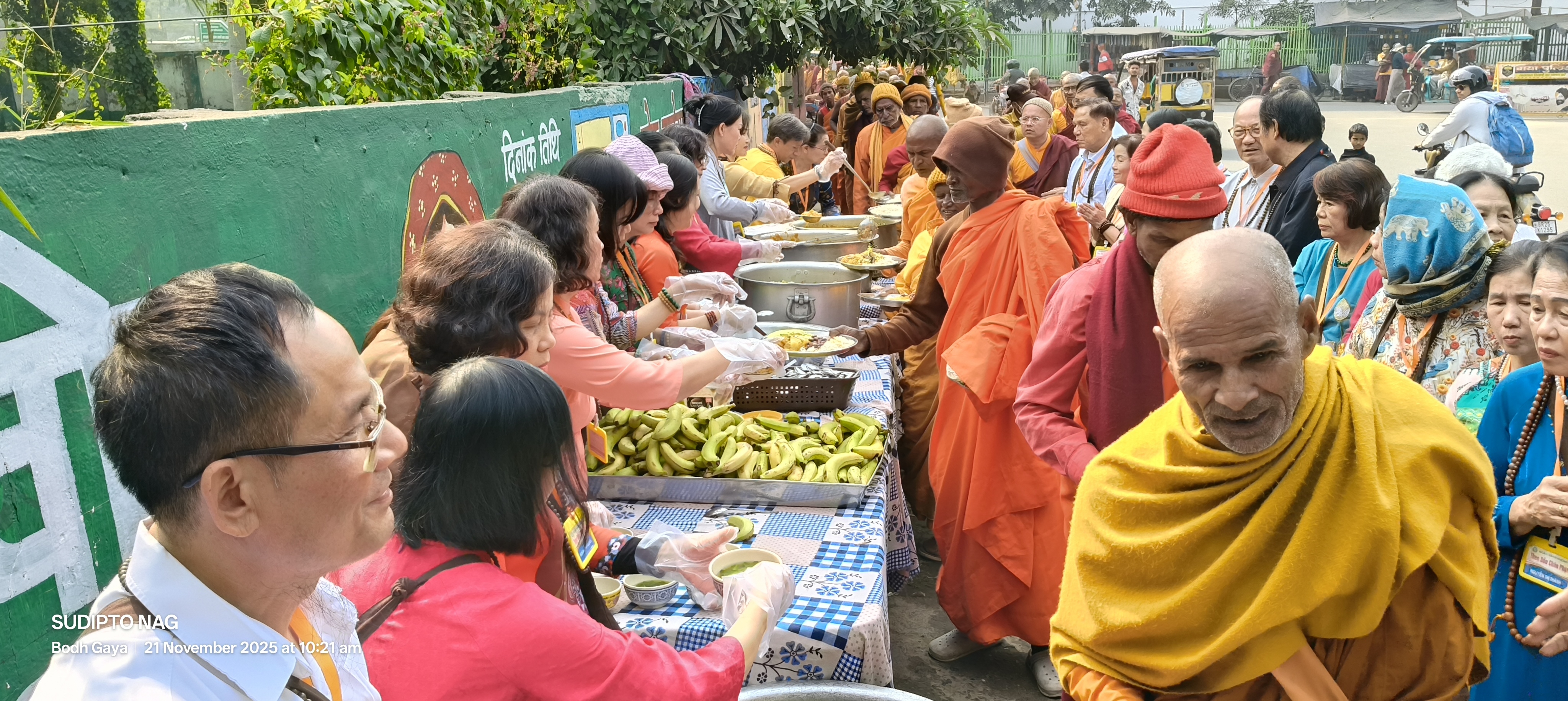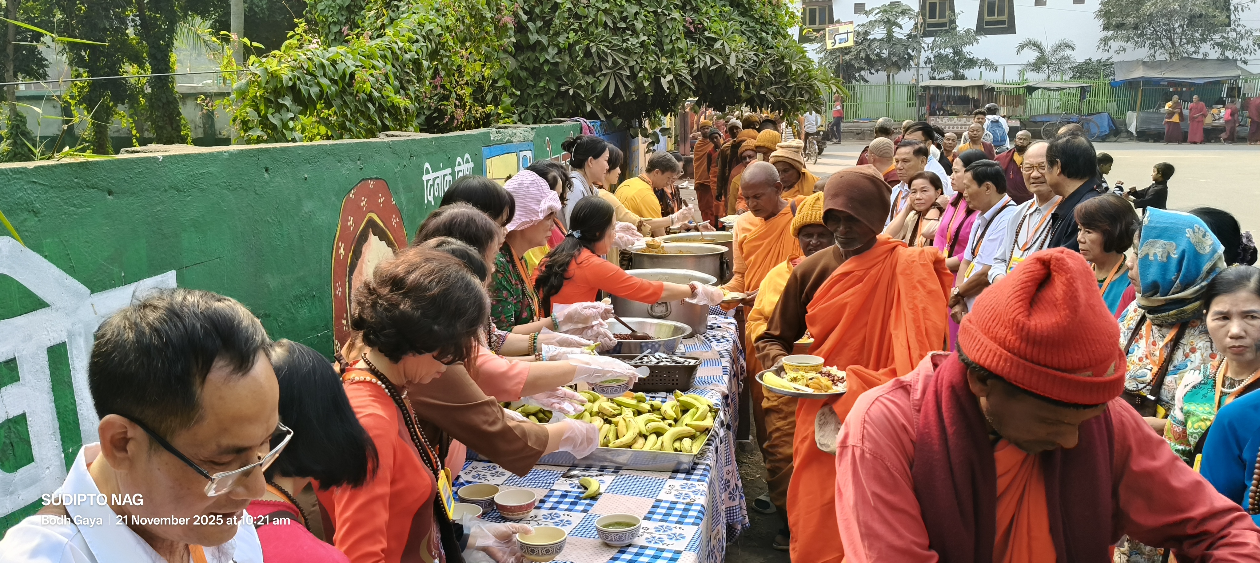 भगवान बुद्ध की ज्ञान स्थली बोधगया में बुधवार को श्रद्धा, करुणा और सेवा की भावना से परिपूर्ण एक विशेष आयोजन किया गया। स्थानीय बौद्ध संगठनों और सामाजिक कार्यकर्ताओं के संयुक्त प्रयास से करीब 400 बौद्ध भिक्षुओं के बीच भोजन वितरण कार्यक्रम संपन्न हुआ। भिक्षु समुदाय की उपस्थिति से पूरा परिसर शांति, अनुशासन और आध्यात्मिक ऊर्जा से भर उठा। भोजन वितरण की शुरुआत मंगलाचरण और त्रिरत्न वंदना के साथ हुई। वियतनामी आयोजकों ने भिक्षुओं के लिए पारंपरिक बौद्ध भोजन, प्रसाद और पेय पदार्थ की समुचित व्यवस्था की थी। दूर-दूर से आए भिक्षुओं ने विनम्रता और संयम के साथ भोजन ग्रहण किया। कार्यक्रम में उपस्थित श्रद्धालुओं ने इसे सौभाग्य और पुण्य संचय का अवसर बताया। भोजन के पश्चात आयोजकों की ओर से दव्य के रूप में आर्थिक सहयोग भी प्रदान किया गया। दव्य प्रदान करना बौद्ध परंपरा में भिक्षुओं के प्रति सम्मान और समर्थन का एक महत्वपूर्ण प्रतीक माना जाता है। इस आर्थिक सहायता को भिक्षुओं ने कृतज्ञता के साथ स्वीकार किया और आयोजकों को मंगलकामनाएं दीं। स्थानीय समाजसेवी राकेश रंजन उर्फ़ पप्पू कुमार और आम नागरिकों ने इस कार्यक्रम को बोधगया में सामुदायिक सौहार्द और धार्मिक सद्भाव का श्रेष्ठ उदाहरण बताया। आयोजन समिति ने बताया कि आगे भी ऐसे कार्यक्रमों के माध्यम से बौद्ध संस्कृति, करुणा और सेवा की परंपरा को प्रोत्साहित किया जाता रहेगा। इस पूरे आयोजन से बोधगया का आध्यात्मिक वातावरण और अधिक प्रेरणादायक व जीवंत हो उठा।
