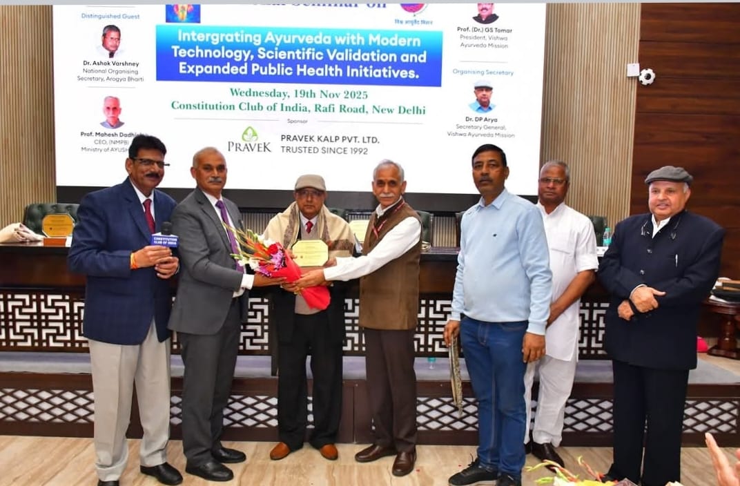 विश्व आयुर्वेद मिशन द्वारा कांस्टीट्यूशन क्लब, में ‘‘इंटीग्रेटिंग आयुर्वेद विद माडर्न टेक्नोलाजी, साइंटिफिक वेलीडेसन एंड एक्सपेंडेड पब्लिक हेल्थ इनीसिएटिव्स’’ विषय पर प्रवेक कल्प के सौजन्य से एक दिवसीय राष्ट्रीय सेमिनार का आयोजन किया गया। जिसकी अध्यक्षता विश्व आयुर्वेद मिशन के राष्ट्रीय अध्यक्ष डा0 जीएस तोमर ने की।
