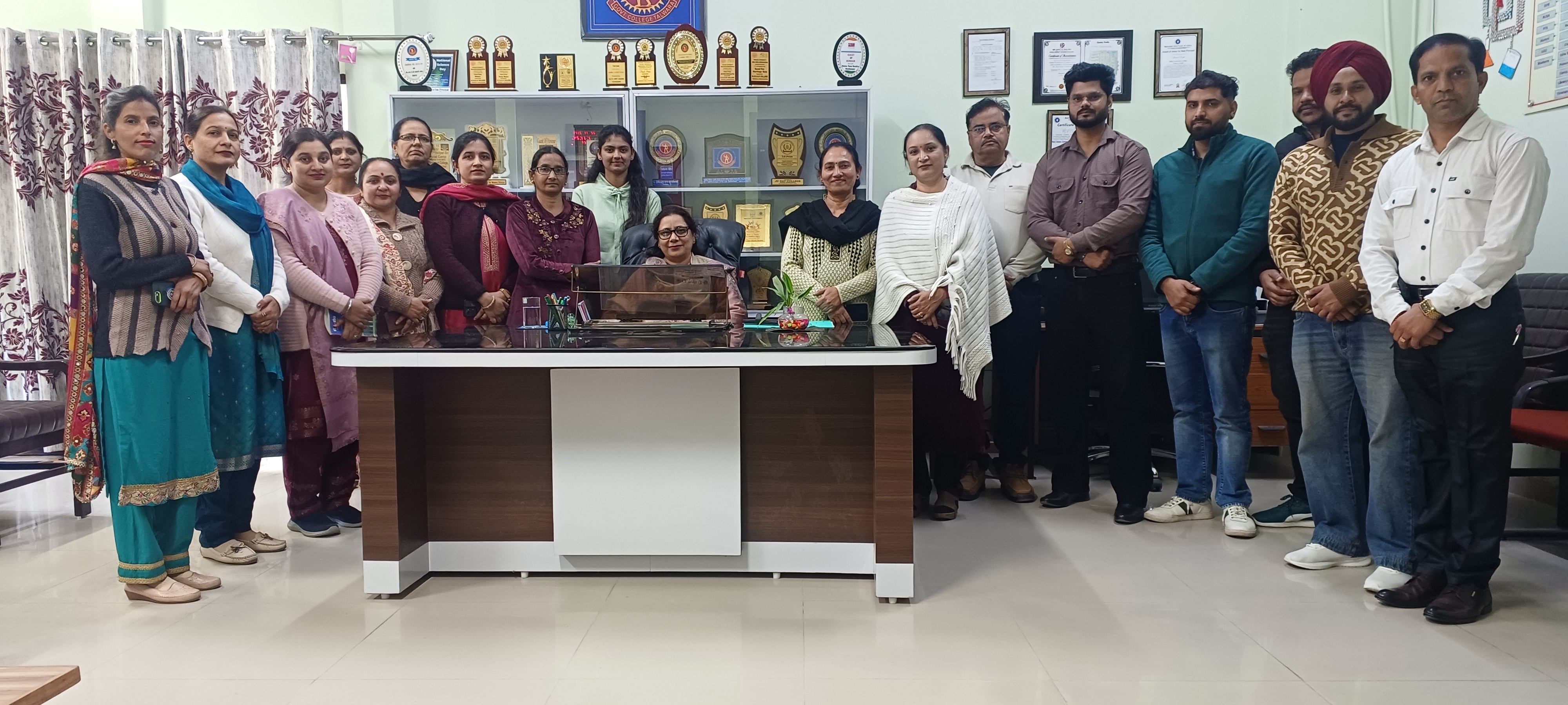 इस समय पर सीनियर प्राध्यापक प्रो. सीमा जस्ल, कॉलेज रजिस्टरार प्रो. अजय कुमार अर्श, प्रो. दर्पण चौधरी, शबनम कुमार एवं गुरदयाल सिंह द्वारा प्रिंसिपल डॉ. गगनदीप चीमा को कॉलेज में चलाए जा रहे विभिन्न कोर्सों , किए गए दाखिलों की प्रक्रिया, विभिन्न प्रकार के वित्तीय फंडों, अलग-अलग भिवागों, लाइब्रेरी और कॉलेज बिल्डिंग एवं उनसे संबंधित दर्पेश विभिन्न समस्याओं के बारे में जानकारी दी गई ।
