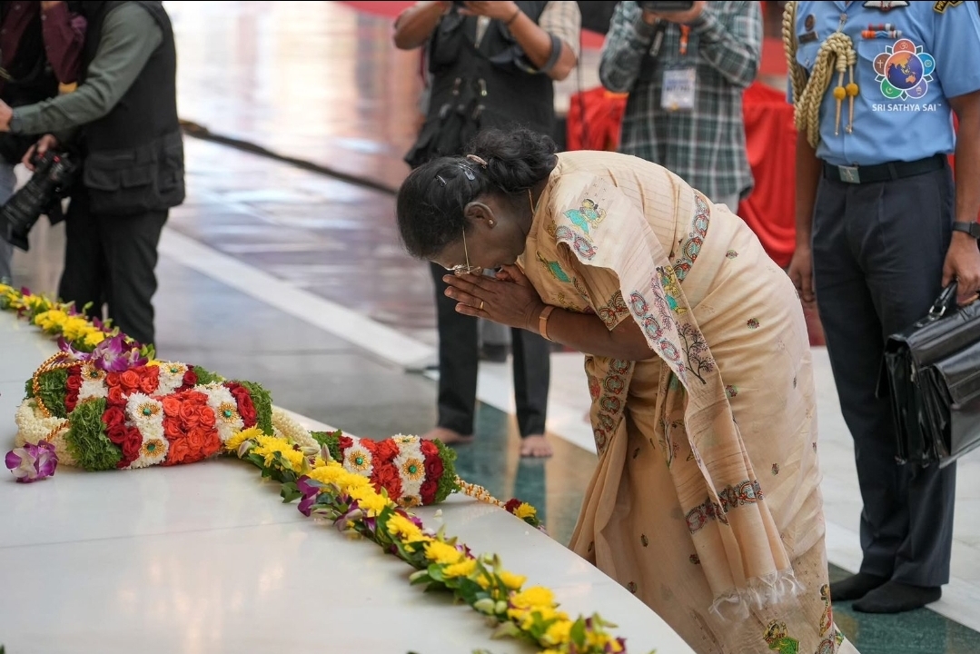 ఆంధ్రప్రదేశ్ రాష్ట్రంలోని శ్రీ సత్య సాయి జిల్లా పుట్టపర్తికి భారత రాష్ట్రపతి శ్రీ ద్రౌపది ముర్ము శనివారం చేరుకున్నారు. పుట్టపర్తి లో అడుగు పెట్టిన వెంటనే భారత రాష్ట్రపతి శ్రీ సత్య సాయి బాబా సమాధిని భక్తిశ్రద్ధలతో సందర్శించారు. శ్రీ సత్య సాయి బోధనలు విశ్వశాంతికి మార్గదర్శకాలని బాబా సేవలను కొనియాడారు. ఈ కార్యక్రమంలో ఉపరాష్ట్రపతి సిపి రాధాకృష్ణన్ పలువురు కేంద్ర మంత్రులు.ఆంధ్రప్రదేశ్ ముఖ్యమంత్రి శ్రీ నారా చంద్రబాబు నాయుడు.విద్యా శాఖ మంత్రి శ్రీ నారా లోకేష్ తో పాటు పలువురు రాష్ట్ర మంత్రులు అధికారులు పాల్గొన్నారు.