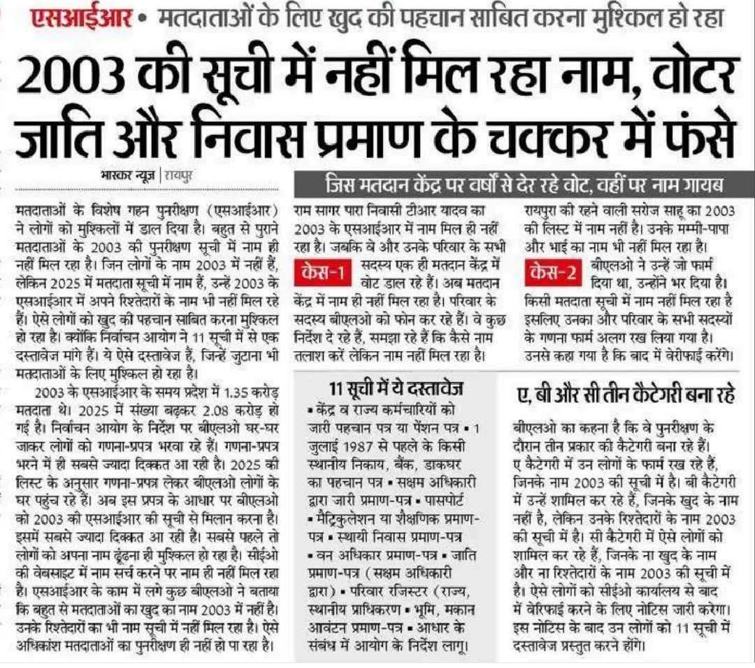 2003 की सूची में नहीं मिल रहा नाम वोटर जाति और निवास प्रमाण के चक्कर में घिस रहे आम जनता जिस मतदान केंद्र पर दे रहे थे वर्षों से वोटर वहीं से नाम गायब