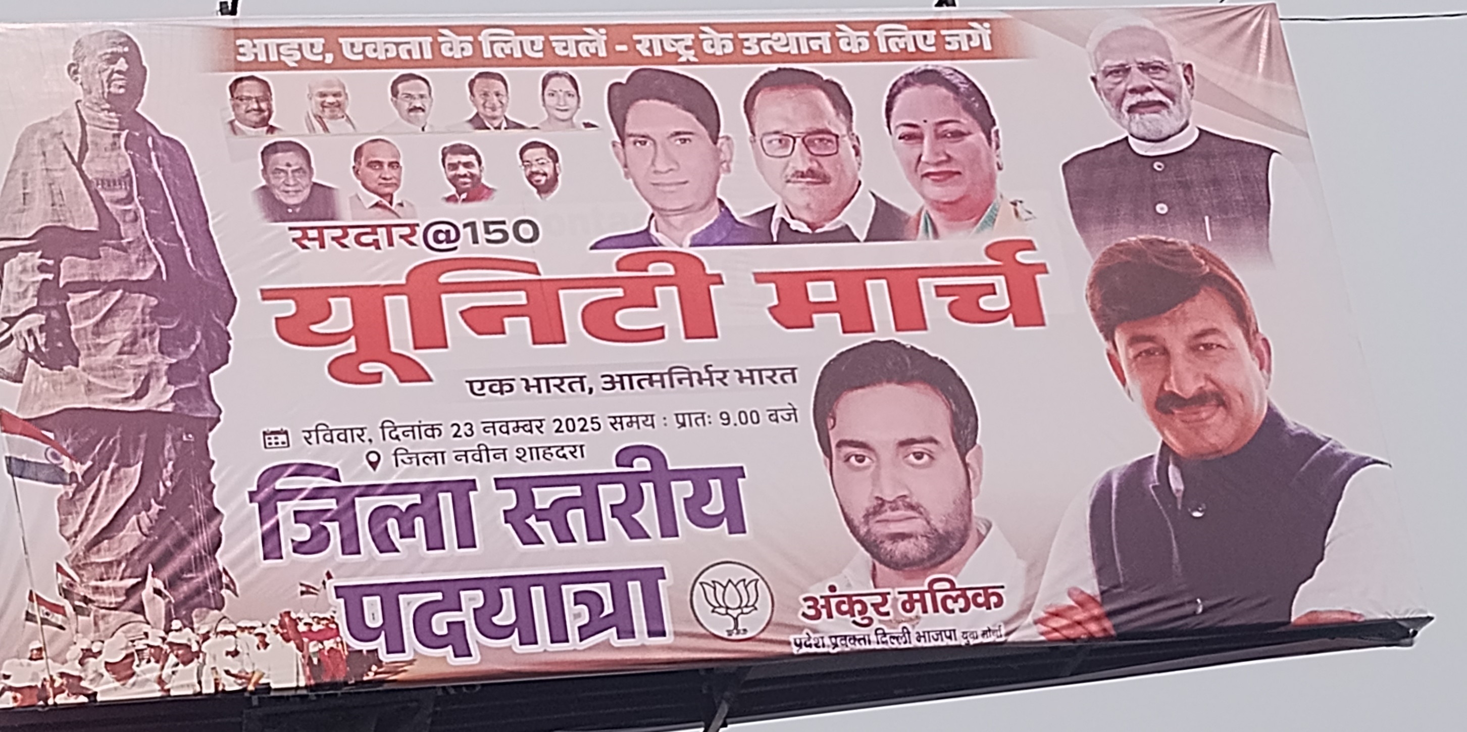 आज रविवार सुबह दुर्गापूरी चौक से भारतीय जनता पार्टी नवीन शाहदरा जिला द्वारा यूनिटी मार्च निकाला गया जिसका नेतृत्व उत्तरी पूर्वी दिल्ली के सांसद माननीय मनोज तिवारी ने किया । इस मार्च में बड़ी संख्या में लोगों ने जिसमें विधायक निगम पार्षद और संगठन के जिला स्तर के पदाधिकारी शामिल थे भाग लिया । ये मार्च ज्योति नगर कार्यालय से शुरू होकर दुर्गापुरी चौक सौ फुट रोड मंडोली रोड से निकला ।दिल्ली पुलिस ट्रैफिक पुलिस वॉलेंटियर अग्निशमन विभाग आदि के चुस्त कर्मियों ने मुस्तैदी से अपनी जिम्मेदारी पूरी की।