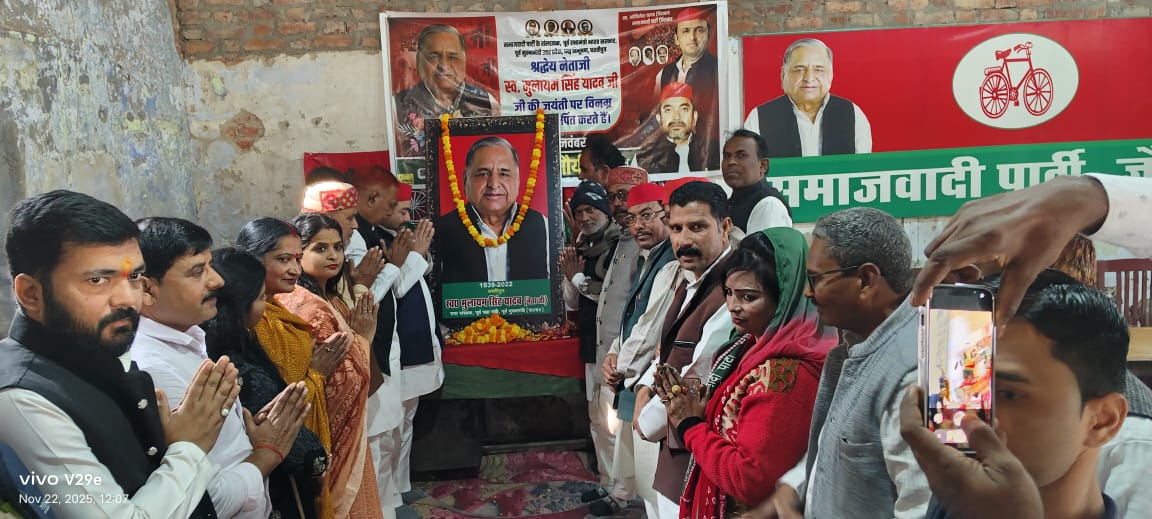जिलाध्यक्ष राकेश मौर्य ने अपने संबोधन में कहा कि 22 नवंबर 1939 को इटावा के सैफई ग्राम में जन्मे नेताजी मुलायम सिंह यादव एक साधारण किसान परिवार से निकलकर देश के शीर्ष नेताओं में शामिल हुए। सामाजिक न्याय, शिक्षा, स्वास्थ्य और सेना के सम्मान को सर्वोच्च प्राथमिकता देने वाले नेताजी का जीवन संघर्ष, सरलता और जनसेवा की मिसाल रहा।
