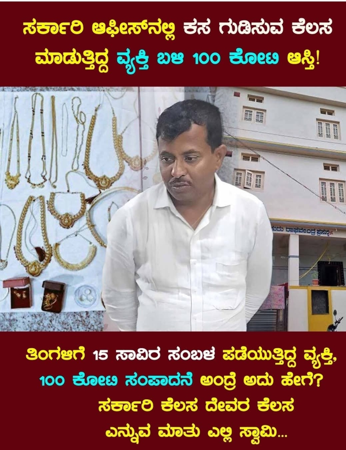 ಸರ್ಕಾರಿ ಆಫ್ಸನಲ್ಲಿ ಕಸ ಗೂಡಿಸುವ ಮಾಡುತ್ತಿದ್ದ ವ್ಯಕ್ತಿ ಬಳಿ 100 ಕೋಟಿ ಅಸ್ತಿ