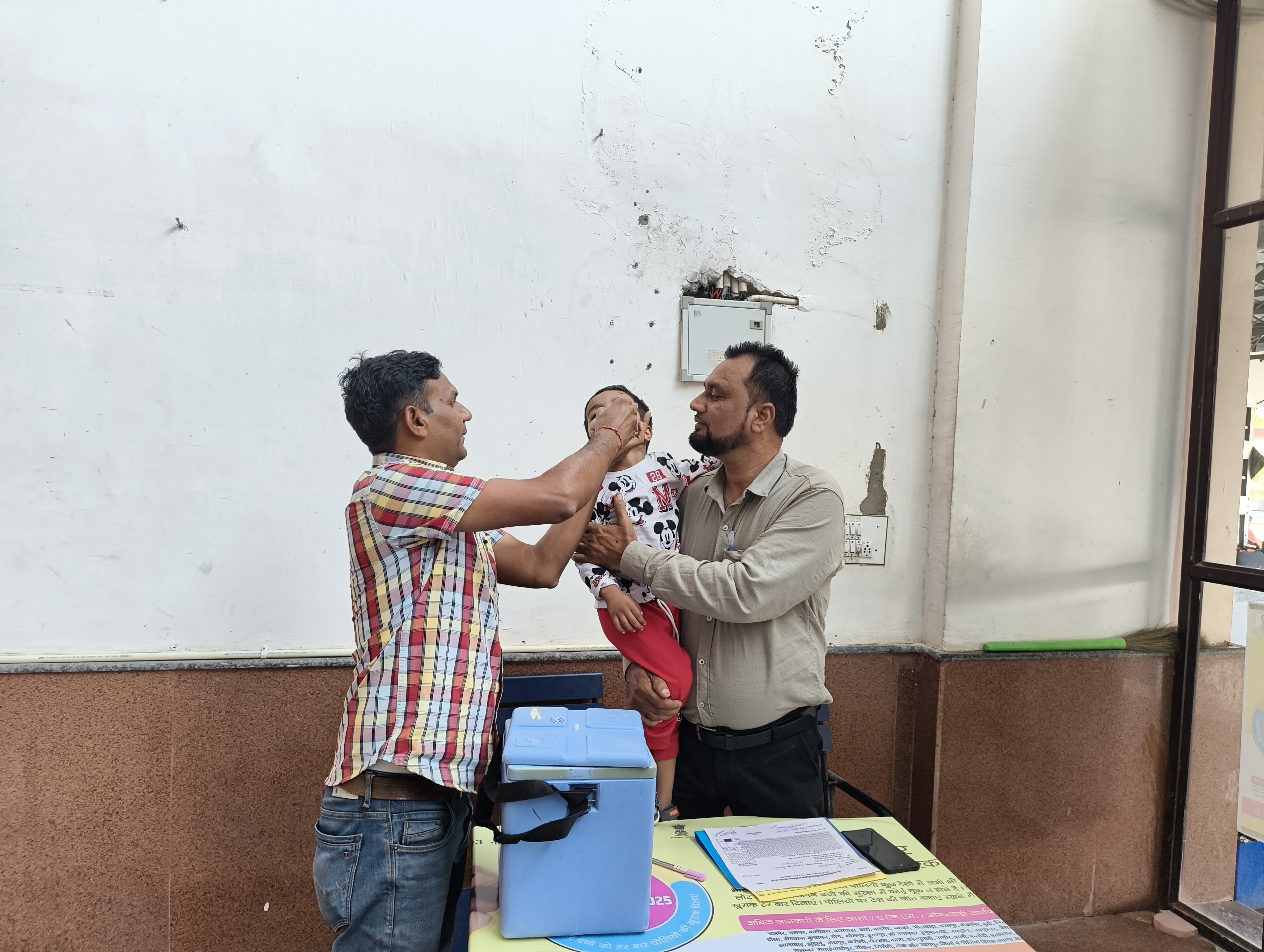 पल्स पोलियो अभियान के तहत रानी रेलवे स्टेशन पर 5 वर्ष से कम बच्चों को पिलाई गई दवा