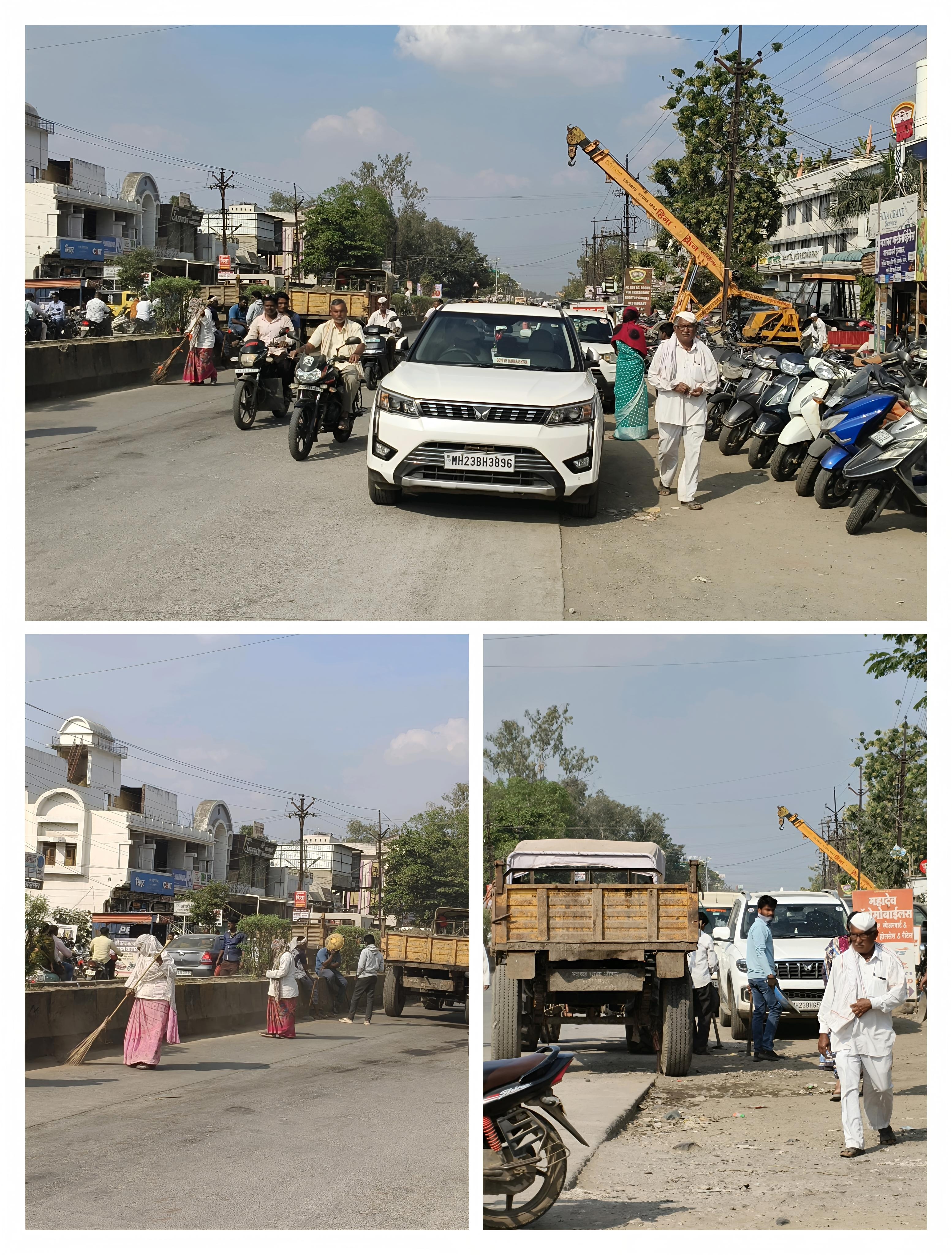 बीड शहरातील प्रमुख चौक, मध्यम नाल्याजवळील परिसर आणि महामार्गाच्या कडेला महिला कर्मचारी, सफाई कामगार झाडू आणि उपकरणांसह काम करताना दिसले. ट्रॅक्टर, क्रेन आणि वाहनांची ये-जा सुरू होती, तर वाहतूक काही काळ संथगतीने सुरू होती.
