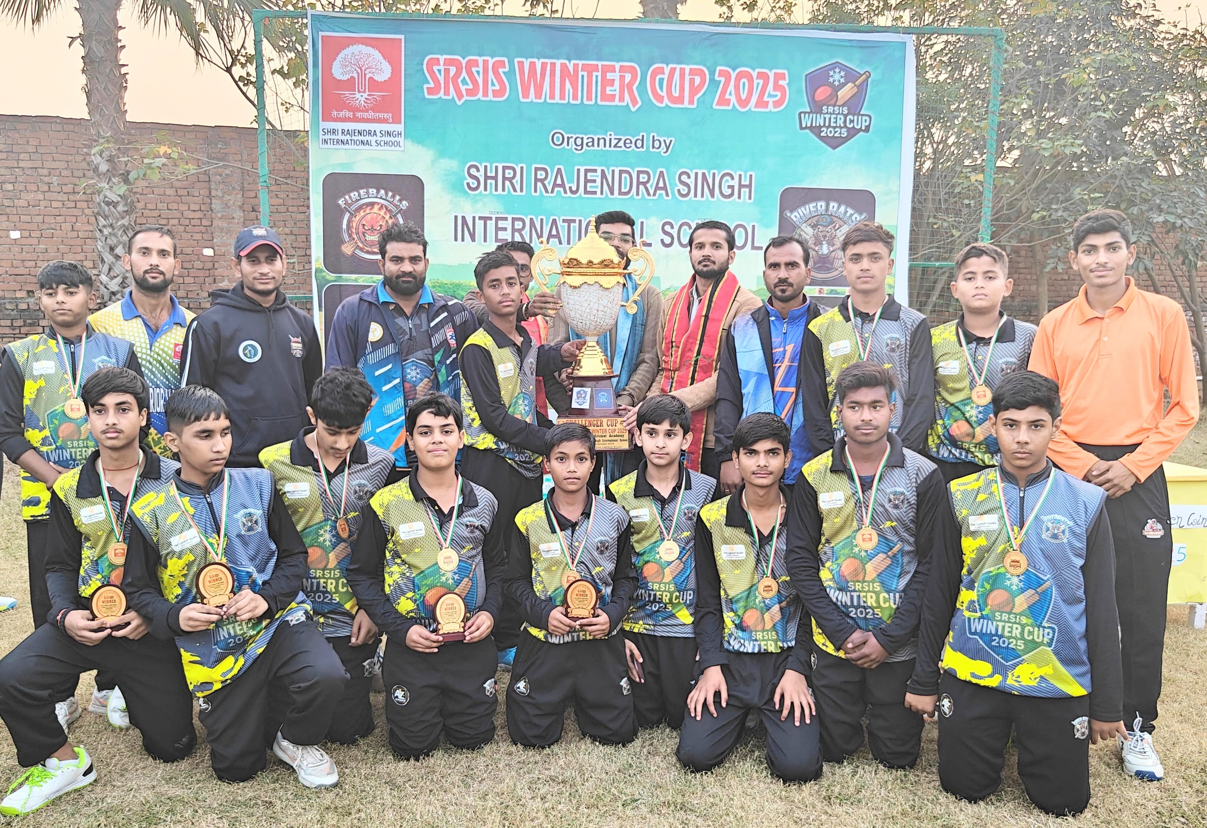 आज श्री राजेन्द्र सिंह इंटरनेशनल स्कूल के खेल मैदान में *विंटर कप टूर्नामेंट 2025* का बहुप्रतीक्षित फाइनल मुकाबला बड़े ही उत्साह और जोश के साथ सम्पन्न हुआ। मैच से पहले स्कूल की खेल विभागाध्यक्ष *शैफाली कपूर* ने खिलाड़ियों से परिचय प्राप्त कर टॉस संपन्न कराया। फाइनल मुकाबला *रिवर रैट्स* और *टर्फ किंग्स* के बीच खेला गया, जिसमें रिवर रैट्स ने अपने ऑलराउंड प्रदर्शन के दम पर शानदार जीत दर्ज की।
