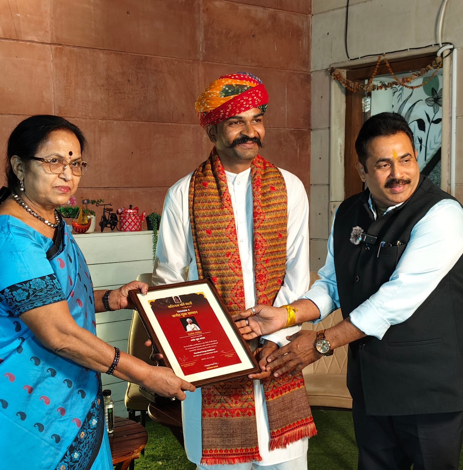 राजस्थान इंटरनेशनल सेंटर में आयोजित बतियन की गली – “A Sip of Art” कार्यक्रम में मोड़क के युवा लोकसंगीत साधक एवं आरोहण फाउंडेशन के संस्थापक मोहित मेहता को कर्मठ युवा सम्मान से सम्मानित किया गया। यह सम्मान उन्हें राजस्थान की लोक संस्कृति के संरक्षण एवं संवर्धन के क्षेत्र में किए जा रहे उनके उल्लेखनीय कार्यों के लिए प्रदान किया गया। कार्यक्रम में मुख्य अतिथि के रूप में राजस्थान की प्रथम महिला ध्रुपद गायिका प्रोफेसर डॉ. मधु भट्ट तैलंग और सुप्रसिद्ध कवि अमित तिवारी उपस्थित रहे। अतिथियों के करकमलों द्वारा मोहित मेहता को सम्मानित किया गया। सम्मान प्राप्त करने के बाद मोहित मेहता ने इस उपलब्धि का श्रेय संपूर्ण राजस्थान की पावन धरा और लोक कलाकारों को समर्पित किया। उन्होंने कहा कि लोक कला और संस्कृति का संरक्षण तभी संभव है जब युवा पीढ़ी इसके प्रति सजग और सक्रिय रहे। कार्यक्रम का संचालन युवा बिस्मिल्लाह खान अवॉर्डी प्रियदर्शिनी मिश्र ने किया। समारोह में बड़ी संख्या में कला, साहित्य और संस्कृति से जुड़े लोग उपस्थित रहे।