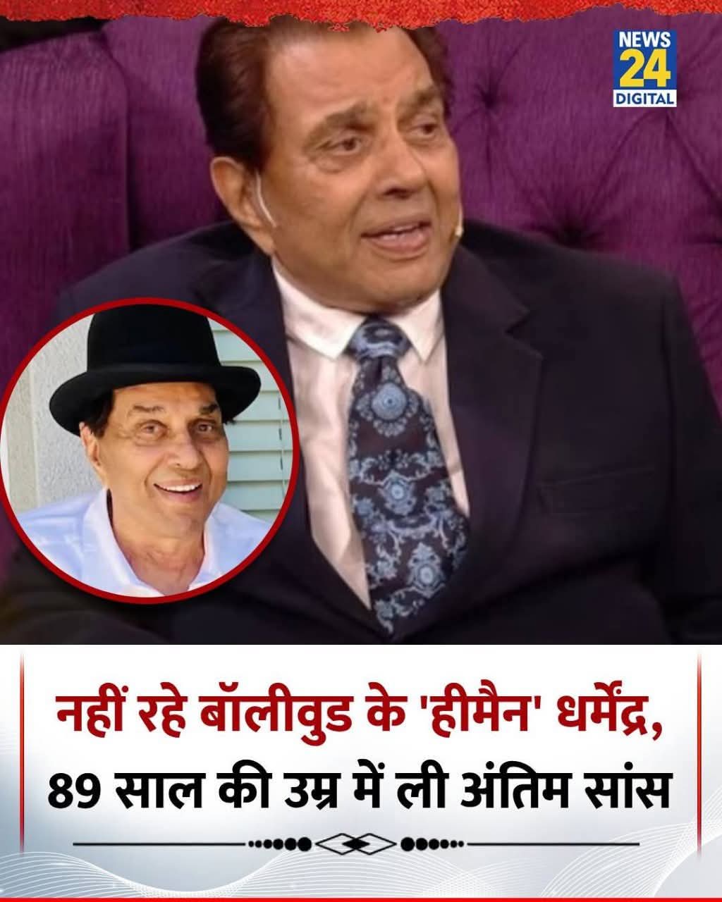 बहुत दुःखद समाचार… 89 वर्षीय बॉलीवुड के ‘ही मैन’ धर्मेंद्र जी अब हमारे बीच नहीं रहे।