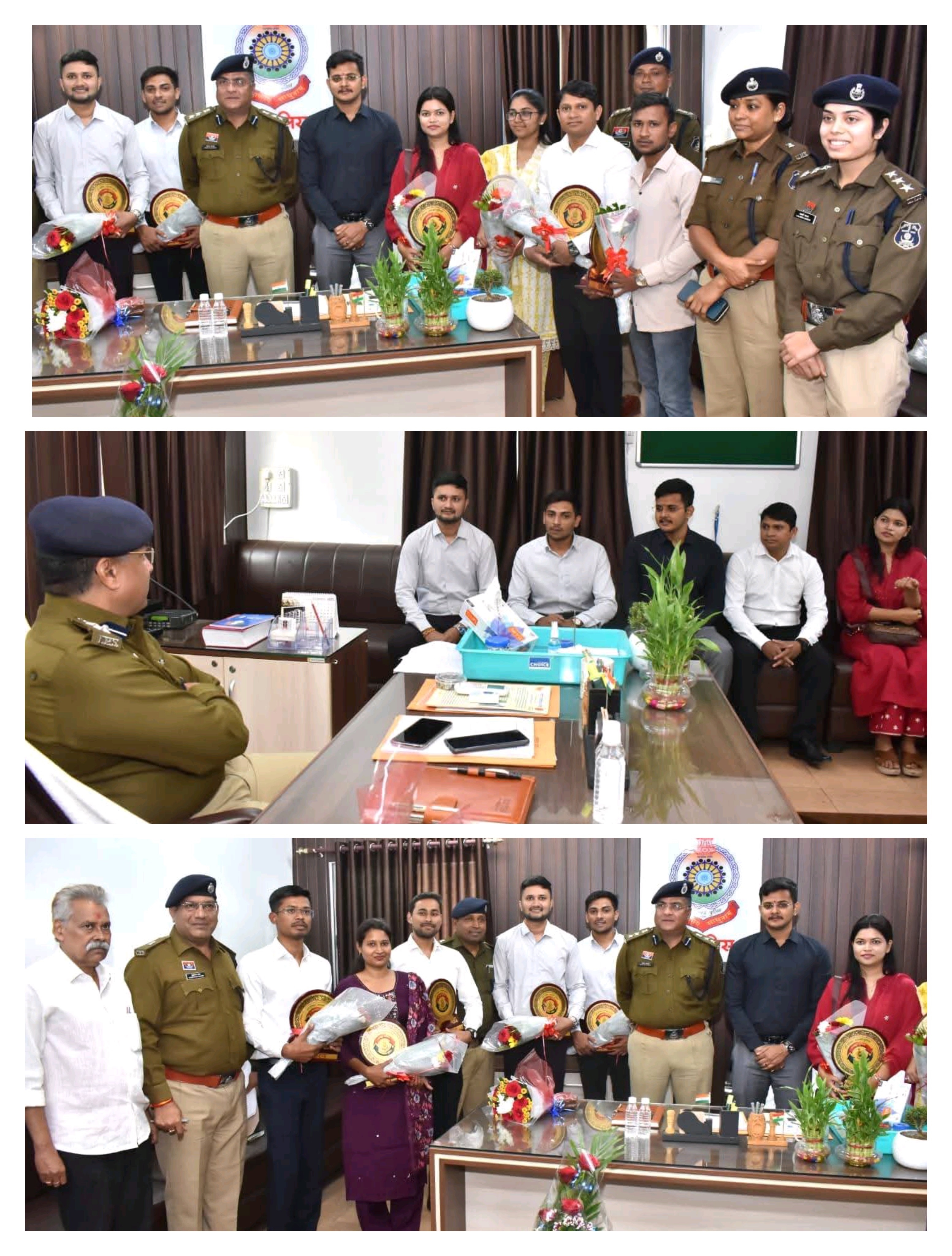पीएससी के द्वारा चयनित अभ्यर्थियों का दुर्ग एसएसपी ने किया सम्मान। पुष्पगुच्छ और दुर्ग पुलिस का मोमेंटो देकर किया गया सम्मानित।
