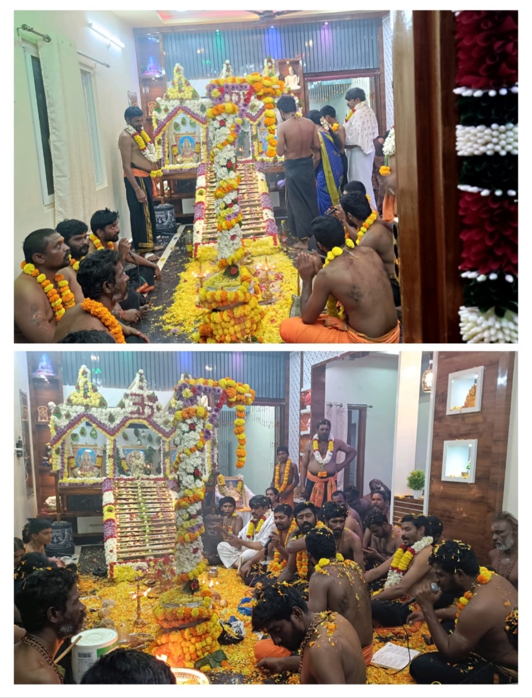 కడప జిల్లా:: కలసపాడు మండలం తెల్లపాడు గ్రామంలో కర్నాటి మధు రెడ్డి రమణారెడ్డి గురు స్వాముల ఆధ్వర్యంలో అయ్యప్ప స్వామి మెట్ల పూజ సోమవారం నాడు ఘనంగా నిర్వహించారు. ఈ సందర్భంగా అయ్యప్ప స్వామి ప్రతిమ విగ్రహానికి పంచామృతాభిషేకాలు మరియు విశేష పూజలు నిర్వహించి అయ్యప్ప స్వామి భజనలతో ఆనందబరితులను చేశారు. ఈ సందర్భంగా గురు స్వామి మాట్లాడుతూ కలియుగ ఆరాధ్య దైవం అయినటువంటి కారణజన్ముడు శ్రీ అయ్యప్ప స్వామి పూజ ఫలితం ఎంతో అద్భుతంగా ఉంటుందని ప్రతి ఒక్కరూ భక్తిశ్రద్ధలతో అయ్యప్ప స్వామిని సేవించి అనంతరం దర్శనార్థం శబరిమల అయ్యప్ప స్వామి సన్నిధి చేరుకుని పావని బంగారు మెట్లని ఎక్కి అయ్యప్ప స్వామి దర్శనం చేసుకుంటారని తెలిపారు. ఈ సందర్భంగా అయ్యప్ప స్వామి పూజకు విచ్చేసిన భక్తులకు తీర్థ ప్రసాదాలు మరియు పంచామృత ప్రసాద వితరణ అనంతరం అల్పాహార అన్నదాన కార్యక్రమం నిర్వహించారు.