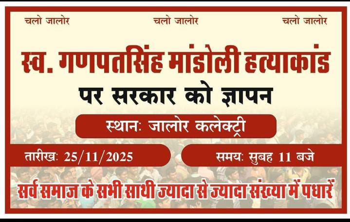 इसी के मद्देनजर 25 नवंबर को जिला कलेक्ट्री, जालोर में सर्वसमाज द्वारा बड़ा संघर्ष प्रदर्शन किया जाएगा। इस कार्यक्रम में समाज के सभी वर्गों से बड़ी संख्या में पहुंचकर न्याय की आवाज़ बुलंद करने की अपील की गई है।