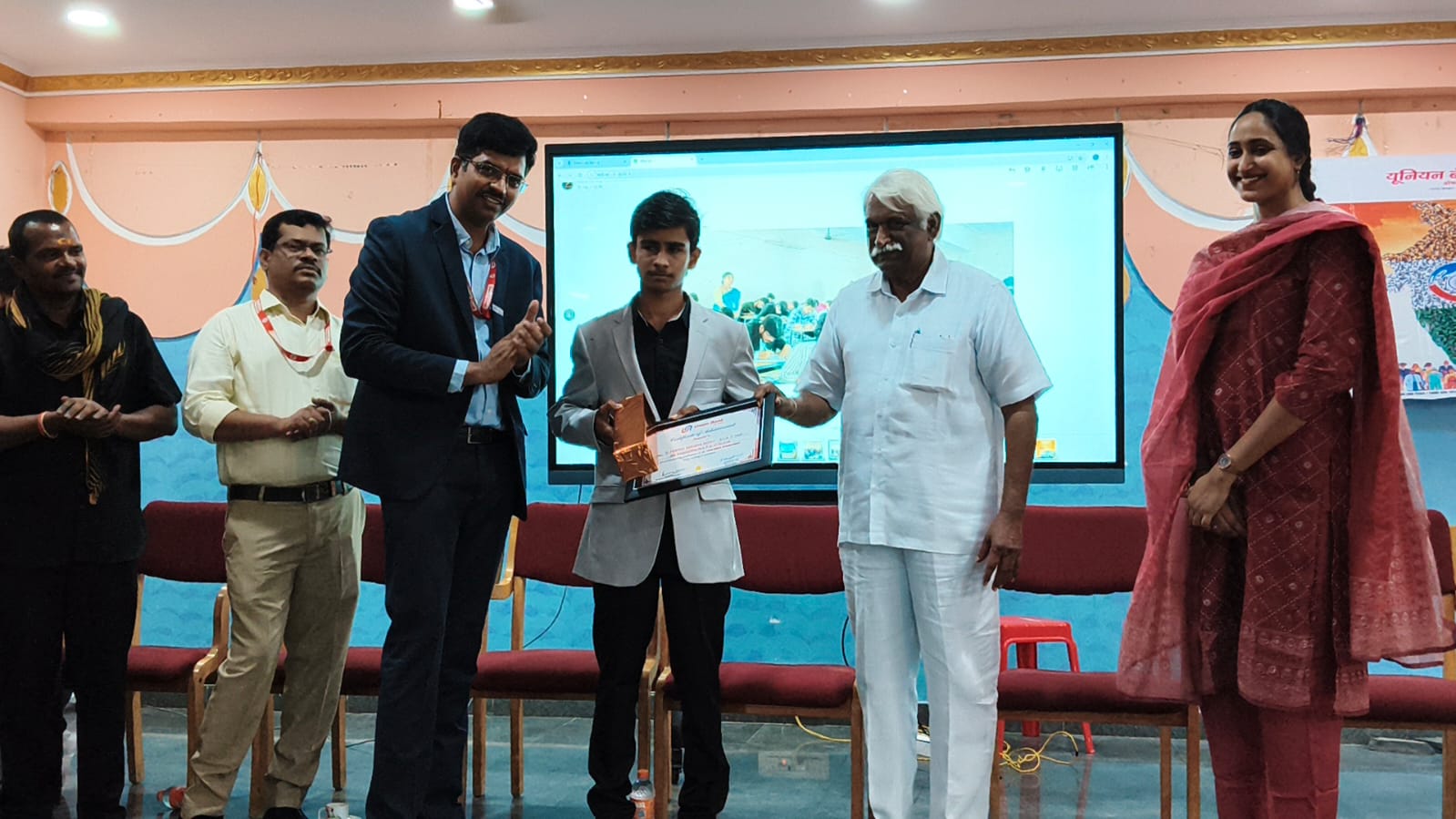 యూనియన్ బ్యాంక్ ఆఫ్ ఇండియా నుండి ప్రశంసాపత్రాన్ని అందుకున్న విద్యార్థులు: