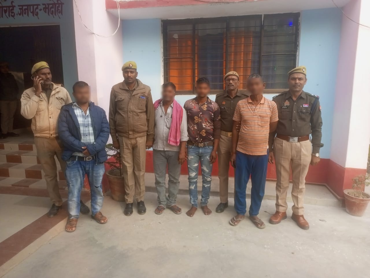 जनपद भदोही पुलिस द्वारा 01 नफर वारंटी तथा 05 व्यक्तियों को शान्ति भंग के अंदेशा में अन्तर्गत धारा 170/126/135 बी0एन0एस0एस0 समेत कुल 06 अभियुक्तों को किया गया गिरफ्तार।