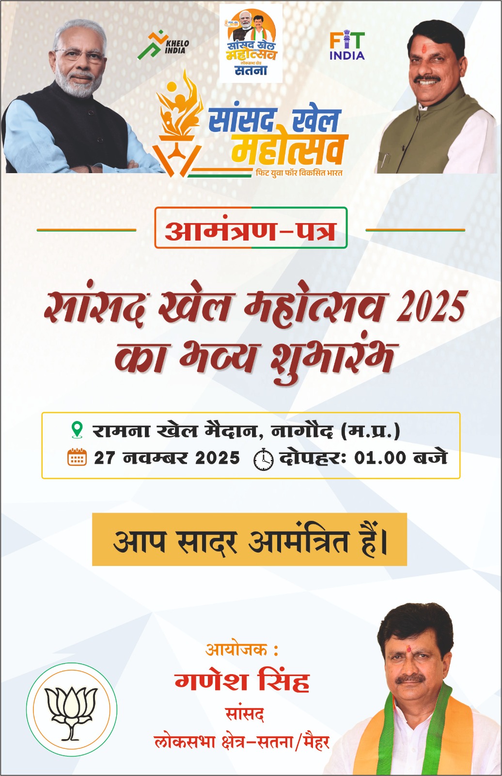 राज्यमंत्री श्रीमती प्रतिमा बागरी जी एवं सांसद श्री गणेश सिंह जी की करेंगे सांसद खेल महोत्सव का भव्य शुभारंभ. खेल प्रेमी जनता एवं खासकर युवा वर्ग में भारी उत्साह।