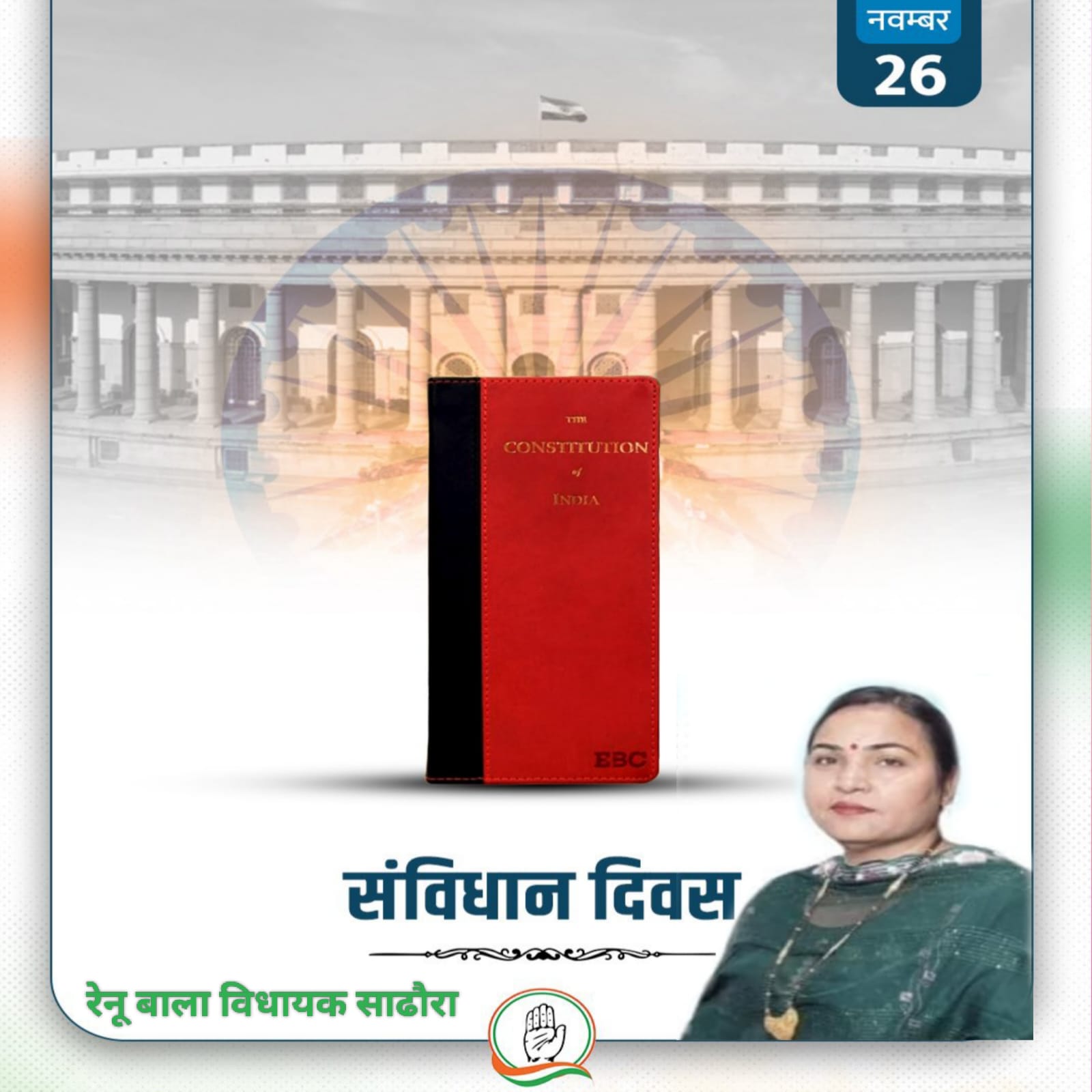 कपुरी :- आज 26 नवंबर 2025, हल्का सधौरा विधायक मैडम रेनुबाला जी नें संविधान दिवस के उपलक्ष में अपने उदगार ऐसे पेश किए, "हमारा संविधान केवल एक दस्तावेज नहीं, बल्कि भारत के प्रत्येक नागरिक की गरिमा, अधिकारों और समानता की नींव है।