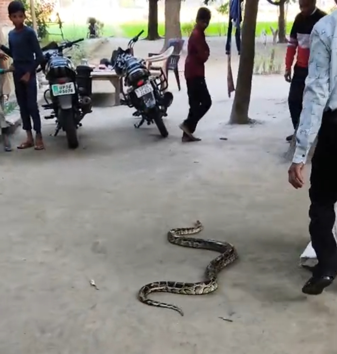 बृजमनगंज, महाराजगंज - नगर पंचायत बृजमनगंज के वार्ड नंबर 6 आजाद नगर आमाकोट में अजगर सांप निकलने से हड़कंप मच गया। यह घटना लगभग शाम 4:30 बजे के करीब माता मंदिर के पास हुई, जिससे आसपास के लोगों में डर और हड़कंप मच गया।