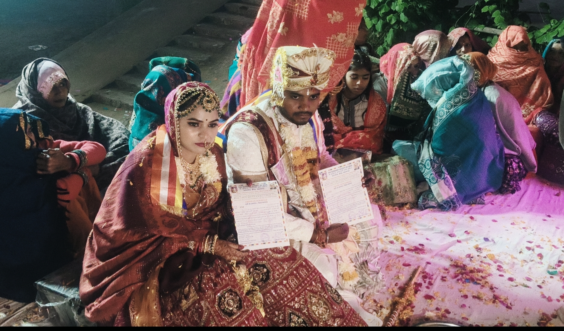 बहुजन समाज के लोगों द्वारा मनुवादी पाखंडवाद को ताक पर रख कर बौद्ध धर्म के अनुसार बाबा साहब भीमराव अंबेडकर व गौतम बुद्ध को तथा संविधान को साक्षी मानकर रचाई शादी,