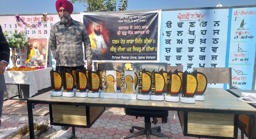 ਅੱਜ ਬਲਾਕ ਦੋਰਾਂਗਲਾ ਦੇ ਸਰਕਾਰੀ ਪ੍ਰਾਇਮਰੀ ਸਕੂਲ ਸਕੂਲ ਹਸਨਪੁਰ ਵਿਖੇ ਇਹ ਵੀ ਗੁਰੂ ਤੇਗ ਬਹਾਦਰ ਜੀ ਦੀ ਸ਼ਹਾਦਤ ਦੇ 350 ਵਰ੍ਹੇ ਨੂੰ ਸਮਰਪਿਤ ਪ੍ਰਸਨੋਤਰੀ ਦਾ ਵਿਦਿਅਕ ਮੁਕਾਬਲਾ ਕਰਵਾਇਆ ਗਿਆ ਇਸ ਸਬੰਧੀ ਜਾਣਕਾਰੀ ਦਿੰਦੇ ਬਲਾਕ ਪ੍ਰਾਇਮਰੀ ਸਿੱਖਿਆ ਅਫਸਰ ਸ੍ਰੀ ਨਰੇਸ਼ ਪਨਿਆੜ ਬੱਚਿਆਂ ਨੂੰ ਸੰਬੋਧਨ ਕਰਦਿਆਂ ਕਿਹਾ ਕਿ ਸ਼੍ਰੀ ਗੁਰੂ ਤੇਗ ਬਹਾਦਰ ਜੀ ਨੇ ਹਿੰਦੂ ਧਰਮ ਨੂੰ ਬਚਾਉਣ ਲਈ ਆਪਣਾ ਸੀਸ ਵਾਰ ਦਿੱਤਾ ਸੀ ਜਿਨ੍ਹਾਂ ਦੀ ਸ਼ਹਾਦਤ ਦੇ 350ਵਰ੍ਹੇ ਪੂਰੇ ਹੋਣ ਤੇ ਸਕੂਲ਼ ਸਿੱਖਿਆ ਵਿਭਾਗ ਪੰਜਾਬ ਵੱਲੋਂ ਕੀਤੇ ਉਪਰਾਲੇ ਸਦਕਾ ਸਕੂਲਾਂ ਵਿੱਚ ਭੇਜੀ ਜਾਂਦੀ ਸਲਾਈਡ ਦੇ ਅਧਾਰ ਤੇ ਬਲਾਕ ਦੋਰਾਂਗਲਾ ਵਿੱਚ ਅੱਜ ਤੁਹਾਡਾ ਮੁਕਾਬਲਾ ਕਰਵਾਇਆ ਗਿਆ ਹੈ l ਜ਼ਿਲ੍ਹਾ ਕਮੈਟੀ ਮੈਂਬਰ ਦਵਿੰਦਰਜੀਤ ਸਿੰਘ ਅਤੇ ਬਲਾਕ ਨੋਡਲ ਅਫ਼ਸਰ ਜੋਤ ਪ੍ਰਕਾਸ਼ ਸਿੰਘ ਨੇ ਦੱਸਿਆ ਕਿ ਪਹਿਲਾਂ ਬਲਾਕ ਦੇ ਅੱਠ ਸੈਂਟਰਾਂ ਦੇ ਵਿੱਚ ਇਹ ਮੁਕਾਬਲੇ ਕਰਵਾਏ ਗਏ ਹੁਣ 8 ਸੈਂਟਰਾਂ ਦੇ ਪਹਿਲੀ ਅਤੇ ਦੂਸਰੇ ਸਥਾਨ ਉੱਪਰ ਆਉਣ ਵਾਲੇ ਬੱਚਿਆਂ ਦਾ ਇਹ ਮੁਕਾਬਲਾ ਕਰਵਾਇਆ ਗਿਆ ਜਿਸ ਵਿੱਚ ਸਰਕਾਰੀ ਪ੍ਰਾਇਮਰੀ ਸਕੂਲ ਗੰਜੀ ਦੀ ਵਿਦਿਆਰਥਣ ਮਨਸੀਰਤ ਕੌਰਪਹਿਲੇ ਨੰਬਰ ਅਤੇ ਸਰਕਾਰੀ ਪ੍ਰਾਇਮਰੀ ਸਕੂਲ਼ ਬਹਿਰਾਮਪੁਰ ਦੀ ਵਿਦਿਆਰਥਣ ਨੂਰਦੀਪ ਨੇ ਦੂਸਰਾ ਸਥਾਨ ਪ੍ਰਾਪਤ ਕੀਤਾ l ਉਹਨਾਂ ਦੱਸਿਆ ਕਿ ਸਾਰੇ ਭਾਗ ਲੈਣ ਦੇ ਬੱਚਿਆਂ ਨੂੰ ਵੀ ਪ੍ਰਸ਼ੰਸਾ ਪੱਤਰ ਅਤੇ ਸਨਮਾਨ ਚਿੰਨ੍ਹ ਦੇ ਕੇ ਸਨਮਾਨਿਤ ਕੀਤਾ ਗਿਆ l ਇਸ ਮੌਕੇ ਸੈਂਟਰ ਹੈਡ ਟੀਚਰ ਗੁਰਪ੍ਰੀਤ ਸਿੰਘ ਮਾਨ, ਸੈਂਟਰ ਹੈਡ ਟੀਚਰ ਗੁਰਪ੍ਰੀਤ ਸਿੰਘ ਬਾਜਵਾ, ਪਰਦੀਪ ਕੁਮਾਰ ਰਵੀ ਕੁਮਾਰ, ਅਤੁਲ ਮਹਾਜਨ ਸ਼ਸ਼ੀ ,ਤੇਜ਼ ਕੁਮਾਰ ,ਮਨਜੀਤ ਕੌਰ, ਸੰਦੀਪ ਸ਼ਰਮਾ, ਜਸਬੀਰ ਕੌਰ, ਹਰਮਨਪ੍ਰੀਤ ਸਿੰਘ,ਜਸਪਾਲ ਸਿੰਘ,ਅਨਿਲ ਕੁਮਾਰ ਸਤਿੰਦਰ ਸਿੰਘ ਆਦਿ ਹਾਜ਼ਰ ਸਨ l