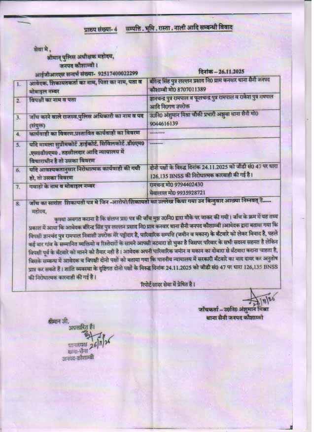 भूमि विवाद समबंधित मामला CM Helpline number से शिकायत दर्ज कराई गई थीं जिसमें गलत रिपोर्ट लगाकर पुलिस द्वारा प्रार्थी को धमकाया गया और कहा कि दोनों पक्षों में जीडी में नाम दर्ज कर दिया जाएगा और धारा 126 व 135 लगाकर कार्यवाही कर देंगे ऐसे प्रार्थी को न्याय कैसे मिलेगा जब प्रार्थी के हुए ऊपर धारा लगा दी जाएगी यह सब सिर्फ फर्जी अपने बचत के खातिर विभाग लग रहा है और ऊपर के अधिकारी इस पर चुपचाप बैठे हुए।